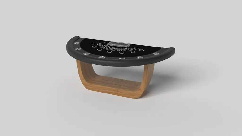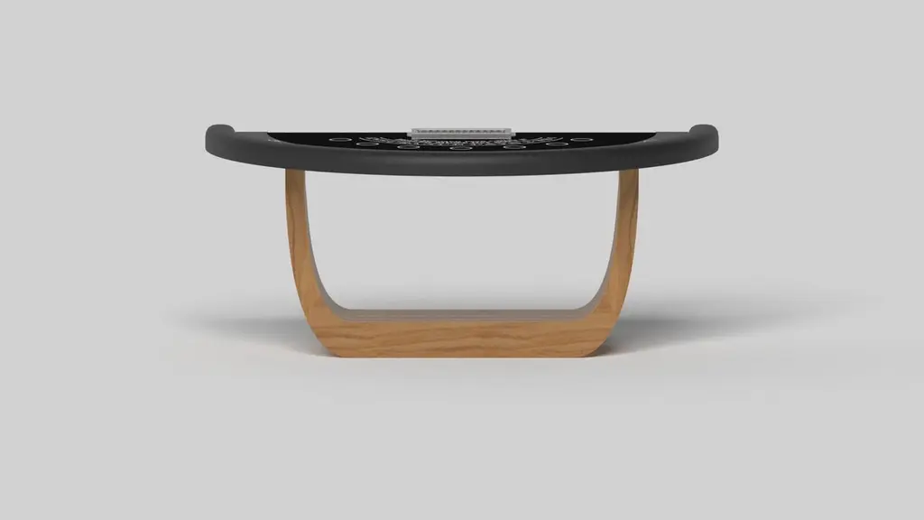 Handcrafted with intricate accents and a precision-carved curved base, the Sid blackjack table in black encompasses a series of smooth edges, distinctive details, and unconventional elements in one unique expression of luxury design. Built by hand with betting circles and a chip rack on the tabletop, this contemporary game table boasts a signature blend of expert craftsmanship and novel composition.Size:88”X46”X30” (Bar Height)Custom Sizes Available Per Request