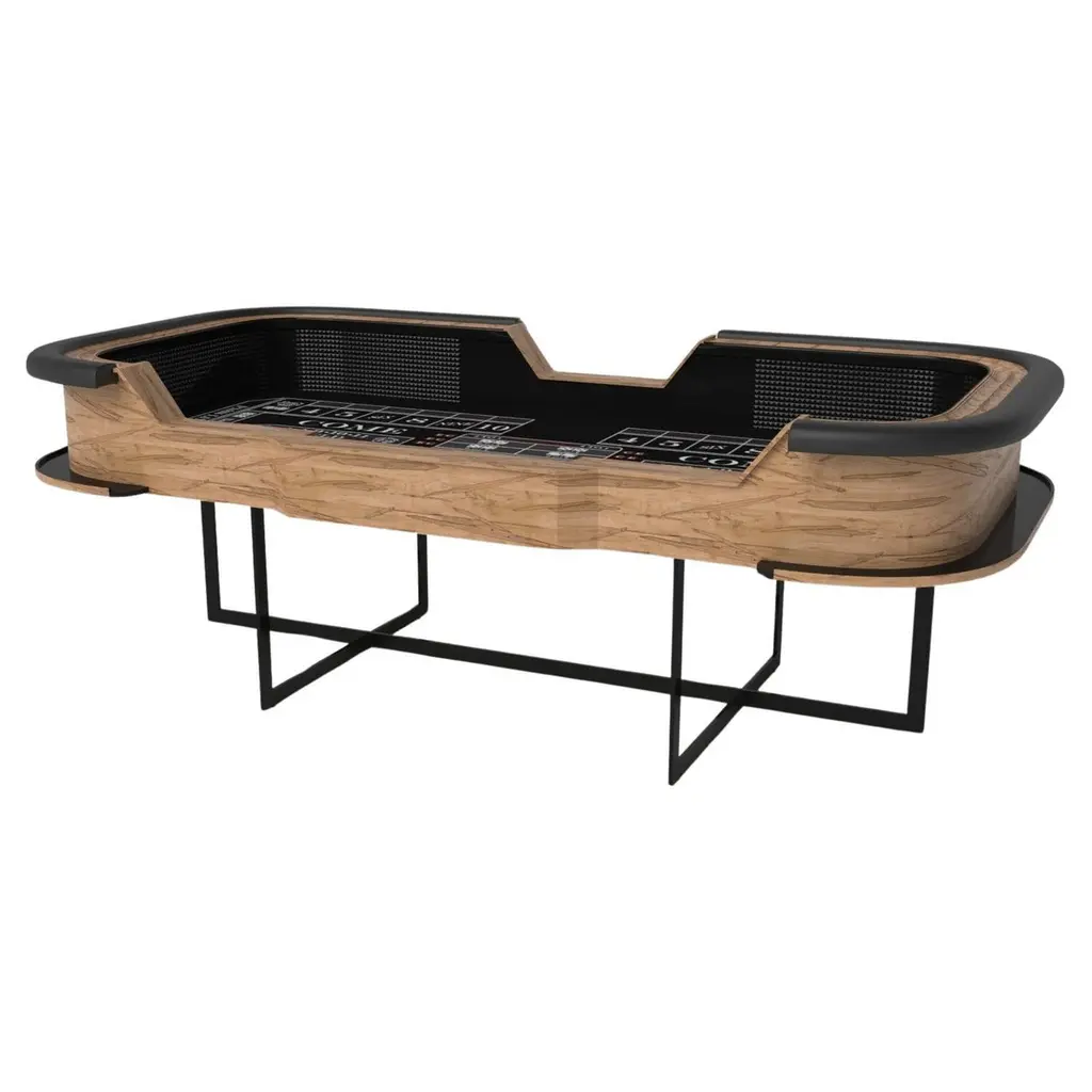 Handcrafted with intricate accents and a precision-carved curved base, the Sid craps table in black encompasses a series of smooth edges, distinctive details, and unconventional elements in one unique expression of luxury design. Built by hand with betting blocks and point boxes on the tabletop, this contemporary game table boasts a signature blend of expert craftsmanship and novel composition.Size:117”X60”X42”Custom Sizes Available Per Request
