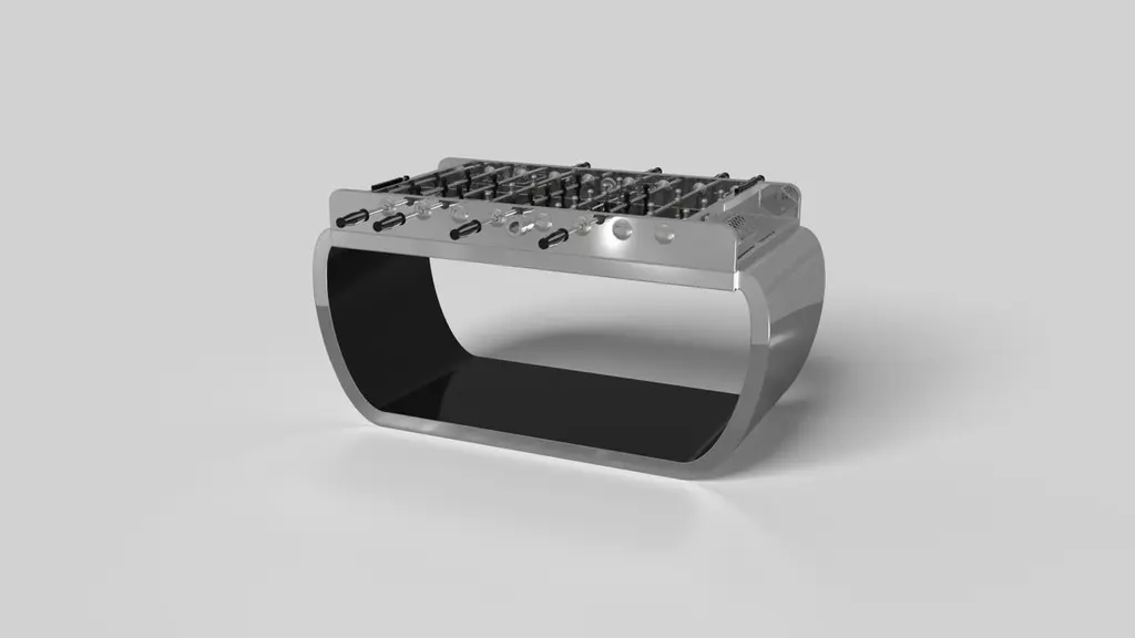 Handcrafted with intricate accents and a precision-carved curved base, the Sid foosball table in black encompasses a series of smooth edges, distinctive details, and unconventional elements in one unique expression of luxury design. Built by hand from solid maple wood, this contemporary game table boasts a signature blend of expert craftsmanship and novel composition.Size:62”X31”X36”