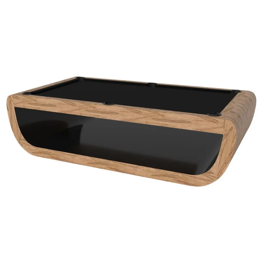 Handcrafted with intricate accents and a precision-carved curved base, the Sid pool table in black encompasses a series of smooth edges, distinctive details, and unconventional elements in one unique expression of luxury design. Built by hand from solid maple wood, this contemporary game table boasts a signature blend of expert craftsmanship and novel composition.Size:8.5 Foot – 108”X60”Playing Area: 92”X46”