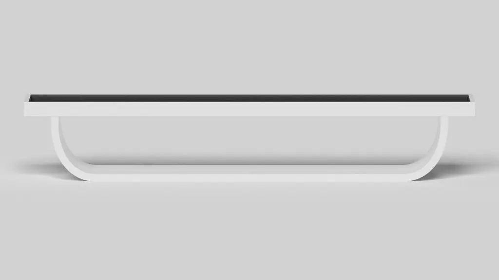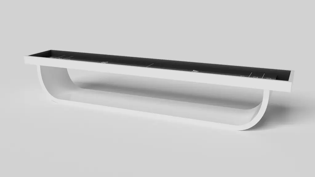 Handcrafted with intricate accents and a precision-carved curved base, the Sid shuffleboard table in black encompasses a series of smooth edges, distinctive details, and unconventional elements in one unique expression of luxury design. Built by hand from solid maple wood, this contemporary game table boasts a signature blend of expert craftsmanship and novel composition.Size:22 Foot - 264”X32”X34”Playing Area Of 248”X20”