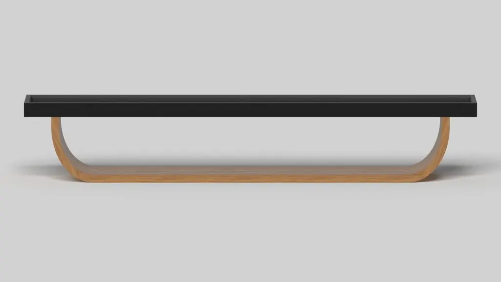 Handcrafted with intricate accents and a precision-carved curved base, the Sid shuffleboard table in black encompasses a series of smooth edges, distinctive details, and unconventional elements in one unique expression of luxury design. Built by hand from solid maple wood, this contemporary game table boasts a signature blend of expert craftsmanship and novel composition.Size:14 Foot - 168”X32”X34”Playing Area Of 152”X20”