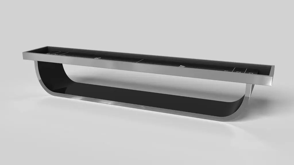 Handcrafted with intricate accents and a precision-carved curved base, the Sid shuffleboard table in black encompasses a series of smooth edges, distinctive details, and unconventional elements in one unique expression of luxury design. Built by hand from solid maple wood, this contemporary game table boasts a signature blend of expert craftsmanship and novel composition.Size:16 Foot - 192”X32”X34”Playing Area Of 176”X20”