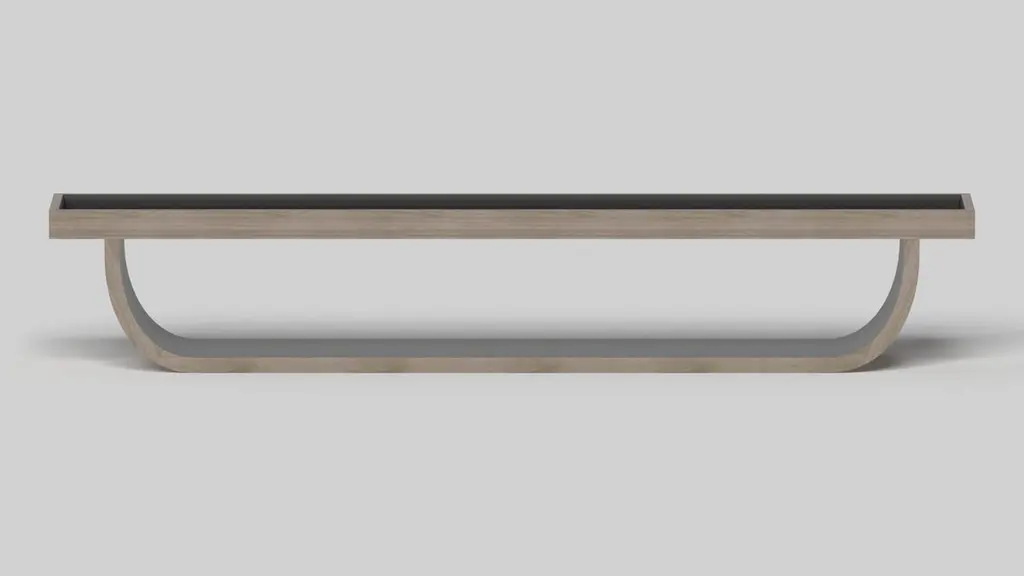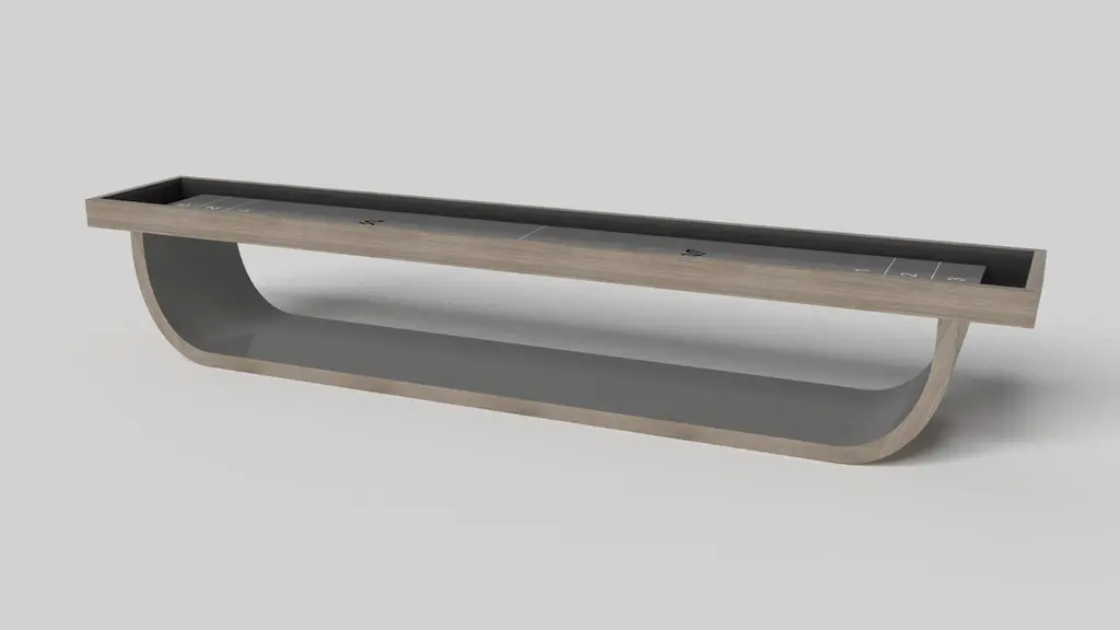 Handcrafted with intricate accents and a precision-carved curved base, the Sid shuffleboard table in black encompasses a series of smooth edges, distinctive details, and unconventional elements in one unique expression of luxury design. Built by hand from solid maple wood, this contemporary game table boasts a signature blend of expert craftsmanship and novel composition.Size:14 Foot - 168”X32”X34”Playing Area Of 152”X20”