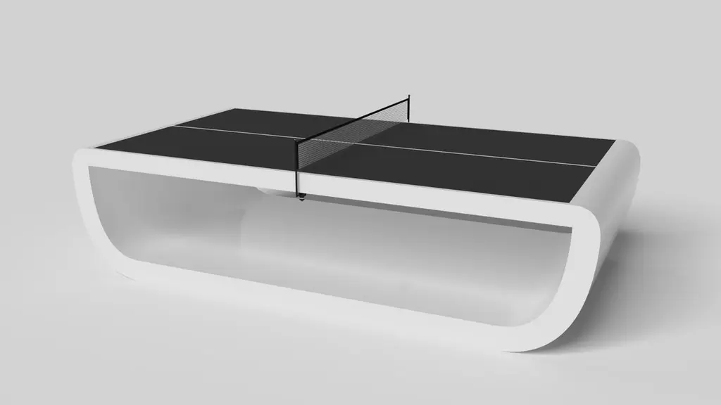 Handcrafted with intricate accents and a precision-carved curved base, the Sid table tennis table in black encompasses a series of smooth edges, distinctive details, and unconventional elements in one unique expression of luxury design. Built by hand from solid maple wood, this contemporary game table boasts a signature blend of expert craftsmanship and novel composition.Size:108”X60”X30”Custom Sizes Available Per Request