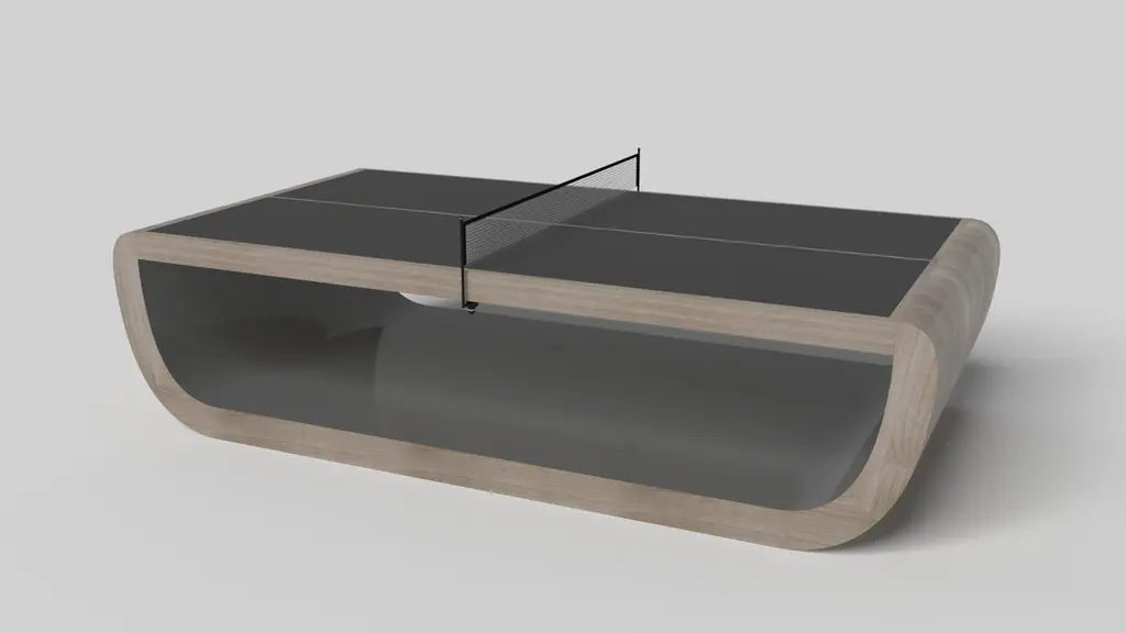 Handcrafted with intricate accents and a precision-carved curved base, the Sid table tennis table in black encompasses a series of smooth edges, distinctive details, and unconventional elements in one unique expression of luxury design. Built by hand from solid maple wood, this contemporary game table boasts a signature blend of expert craftsmanship and novel composition. Size:108”X60”X30”Custom Sizes Available Per Request