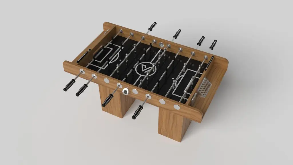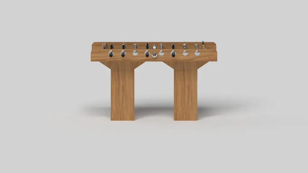 Minimalist design meets opulent elegance in the Trestle foosball table. Detailed with a professional surface for endless game play, this contemporary table is expertly crafted. Square block legs give it a stark, geometric look that contributes to its timeless appeal.Size:62”X31”X36”