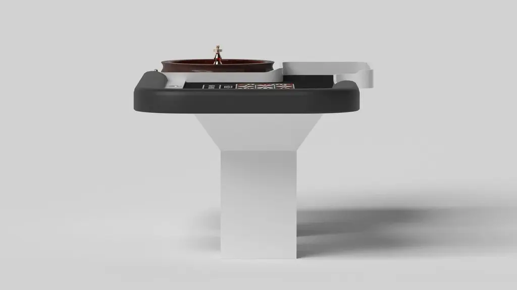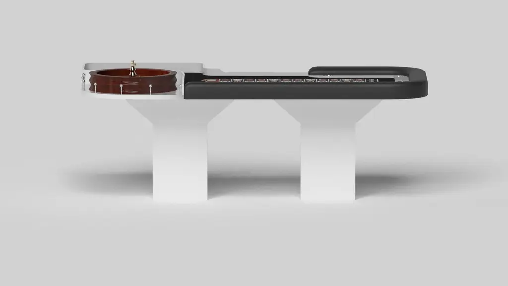 Minimalist design meets opulent elegance in the Trestle roulette table. Detailed with a professional surface for endless game play, this contemporary table is expertly crafted. Square block legs give it a stark, geometric look that contributes to its timeless appeal.Size:98”X50”X30”Custom Sizes Available Per Request