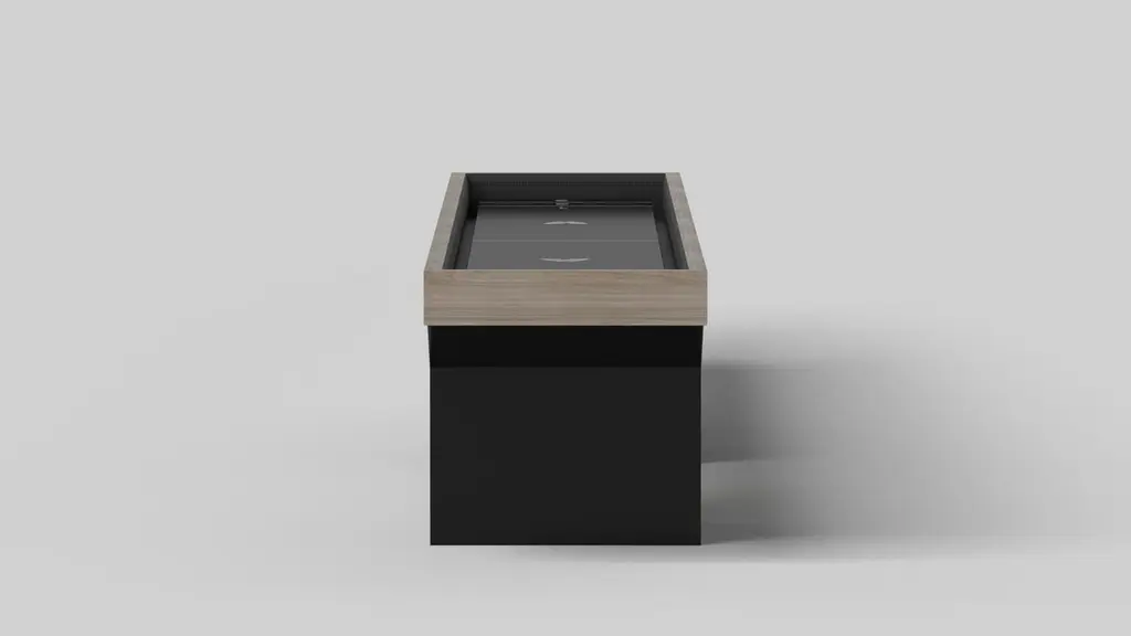 Minimalist design meets opulent elegance in the Trestle shuffleboard table. Detailed with a professional surface for endless game play, this contemporary table is expertly crafted. Square block legs give it a stark, geometric look that contributes to its timeless appeal.Size:12 Foot - 144”X32”X34”Playing Area Of 128”X20”