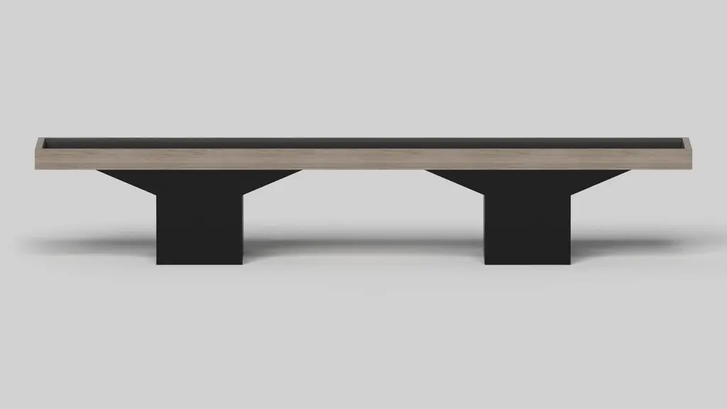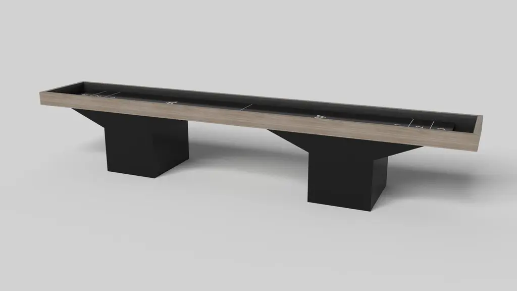 Minimalist design meets opulent elegance in the Trestle shuffleboard table. Detailed with a professional surface for endless game play, this contemporary table is expertly crafted. Square block legs give it a stark, geometric look that contributes to its timeless appeal.Size:16 Foot - 192”X32”X34”Playing Area Of 176”X20”