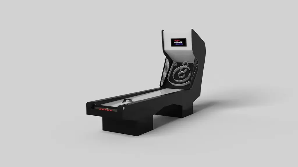 Minimalist design meets opulent elegance in the Trestle skeeball game. Detailed with digital components such as sound effects and LED lights, this contemporary game is expertly crafted. Square block legs give it a stark, geometric look that contributes to its timeless appeal.