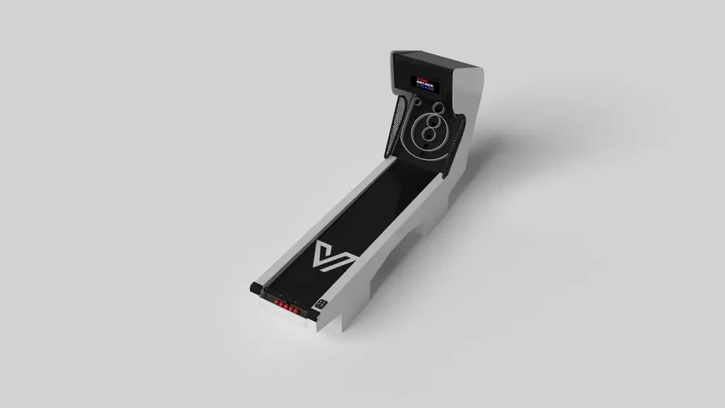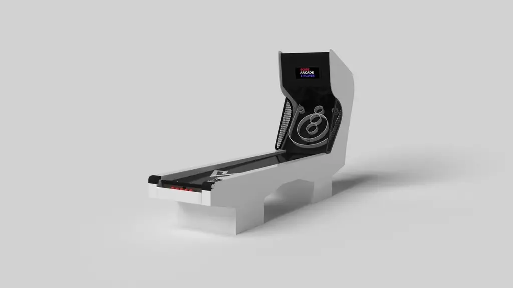 Minimalist design meets opulent elegance in the Trestle skeeball game. Detailed with digital components such as sound effects and LED lights, this contemporary game is expertly crafted. Square block legs give it a stark, geometric look that contributes to its timeless appeal.