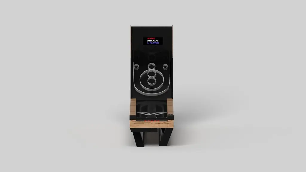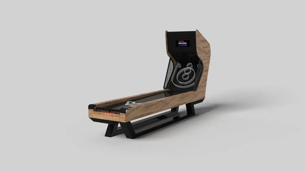 A contemporary composition of clean lines and sleek edges, the Trinity skeeball game is an elegant expression of modern design. Handcrafted and detailed with built-in digital components, this game offers statement-making style with sharp angles that form three distinct triangles when viewed from the side. When viewed from each end, a Z-shaped pattern takes form, giving it bold, geometric appeal to fits seamlessly into any modern room design.