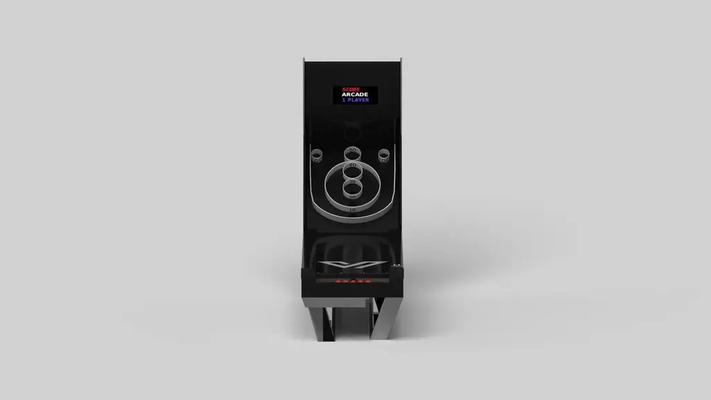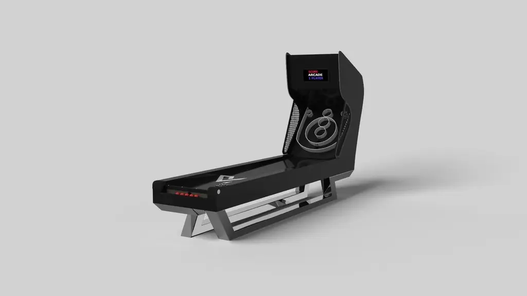 A contemporary composition of clean lines and sleek edges, the Trinity skeeball game is an elegant expression of modern design. Handcrafted and detailed with built-in digital components, this game offers statement-making style with sharp angles that form three distinct triangles when viewed from the side. When viewed from each end, a Z-shaped pattern takes form, giving it bold, geometric appeal to fits seamlessly into any modern room design.