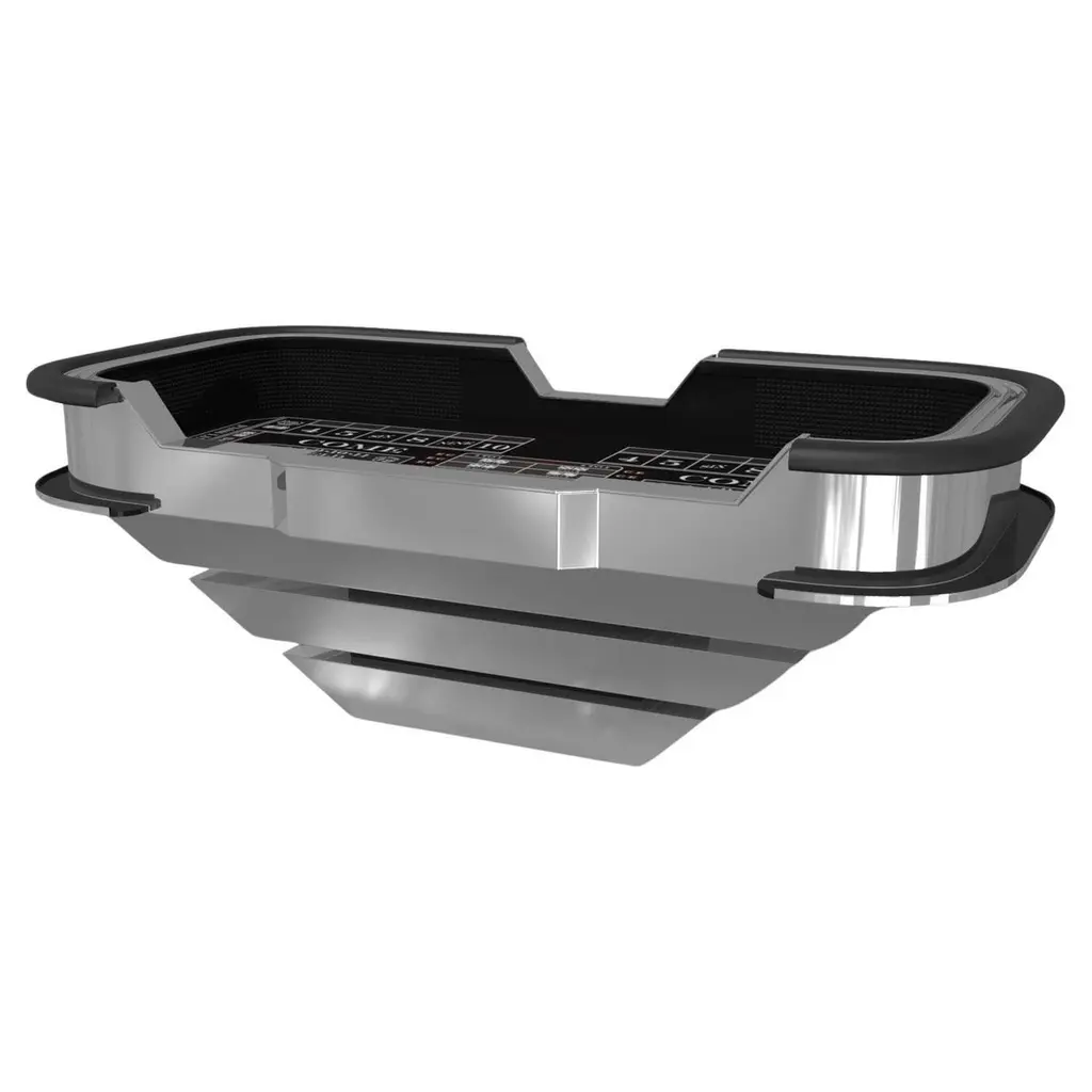 Handcrafted with clean lines, sharp angles, and a pyramid base, the Vogue craps table in brushed aluminum strikes the perfect balance between sport-inspired style and contemporary design. Timeless in its appeal and revered for its practicality and purpose, this custom game table is beautifully crafted with a professional tabletop that includes point boxes and betting blocks.Size:117”X60”X42”Custom Sizes Available Per Request