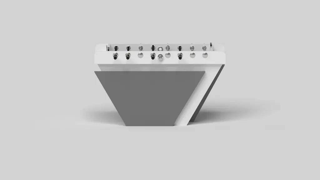 Handcrafted with clean lines, sharp angles, and a pyramid base, the Vogue foosball table in chrome with black strikes the perfect balance between sport-inspired style and contemporary design. Timeless in its appeal and revered for its practicality and purpose, this custom game table is beautifully crafted from durable metal with black maple wood accents that give it a cutting edge look.Size:62”X31”X36”