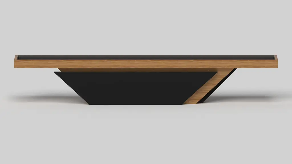 Handcrafted with clean lines, sharp angles, and a pyramid base, the Vogue shuffleboard table in chrome with black strikes the perfect balance between sport-inspired style and contemporary design. Timeless in its appeal and revered for its practicality and purpose, this custom game table is beautifully crafted from durable metal with black maple wood accents that give it a cutting edge look.Size:9 Foot - 108”X32”X34”Playing Area Of 92”X20”