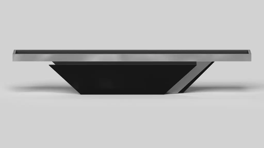 Handcrafted with clean lines, sharp angles, and a pyramid base, the Vogue shuffleboard table in chrome with black strikes the perfect balance between sport-inspired style and contemporary design. Timeless in its appeal and revered for its practicality and purpose, this custom game table is beautifully crafted from durable metal with black maple wood accents that give it a cutting edge look.Size:22 Foot - 264”X32”X34”Playing Area Of 248”X20”