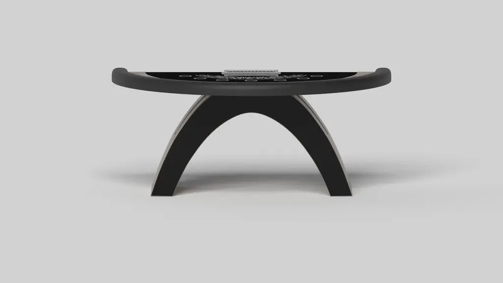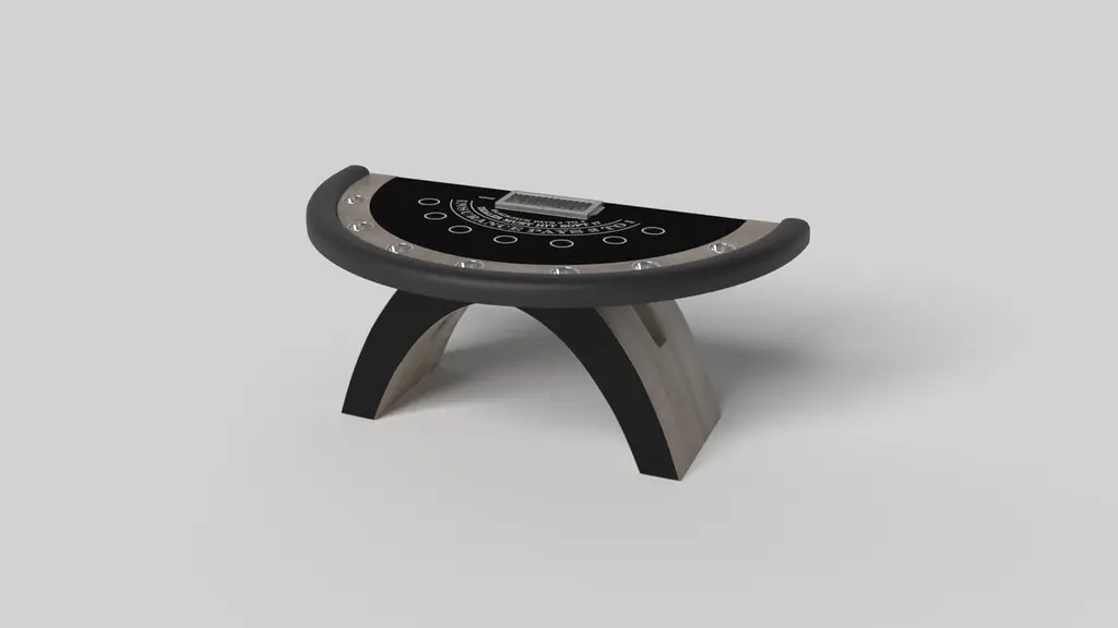 An open, arched base balances beautifully against the hard edges of the semicircular surface top, making the Zenith blackjack table in white a striking juxtaposition of modern, geometric forms. Minimalist in its appeal yet luxurious in design, this contemporary table is handcrafted with a professional tabletop and distinctive details that embody an open-minded, open-ended sense of spirit.Size:88”X46”X30” (Bar Height)Custom Sizes Available Per Request