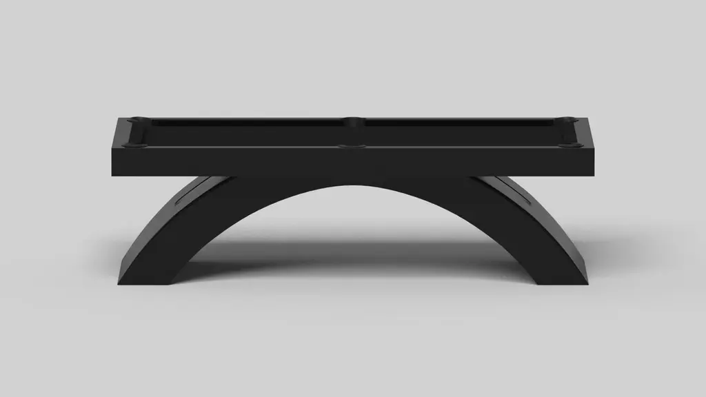 An open, arched base balances beautifully against the hard edges of the rectangular surface top, making the Zenith pool table in black with red a striking juxtaposition of modern, geometric forms. Minimalist in its appeal yet luxurious in design, this contemporary table is handcrafted from solid maple wood with a black oil stain and red accents that embody a vibrant, energetic sense of spirit.Size:7 Foot - 91”X52”Playing Area Of 39”X78”8 Foot – 101”X57”Playing Area Of 88”X44”