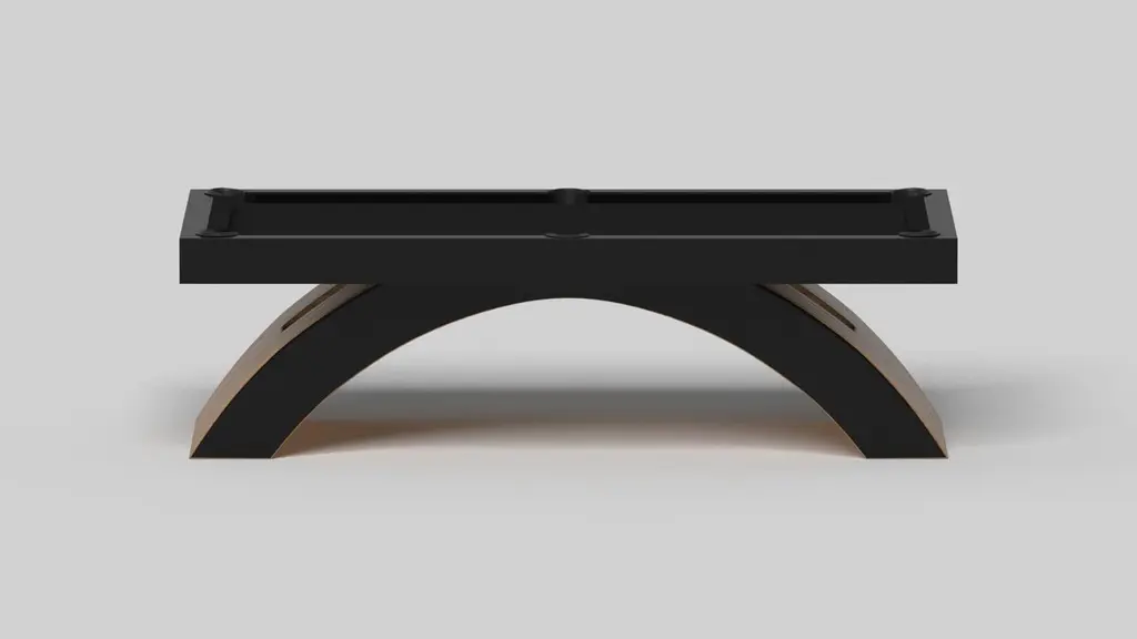 An open, arched base balances beautifully against the hard edges of the rectangular surface top, making the Zenith pool table in black with red a striking juxtaposition of modern, geometric forms. Minimalist in its appeal yet luxurious in design, this contemporary table is handcrafted from solid maple wood with a black oil stain and red accents that embody a vibrant, energetic sense of spirit.Size:8.5 Foot – 108”X60”Playing Area: 92”X46”