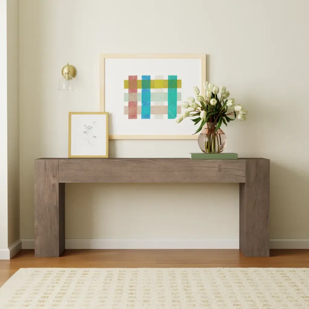 Clean and minimal, our console table blends seamlessly with a range of decor styles. It's crafted from solid oak wood in your choice of finish and features a stone top for just the right amount of contrast. Best of all, this table arrives at your door fully assembled, so you can start enjoying it right away.