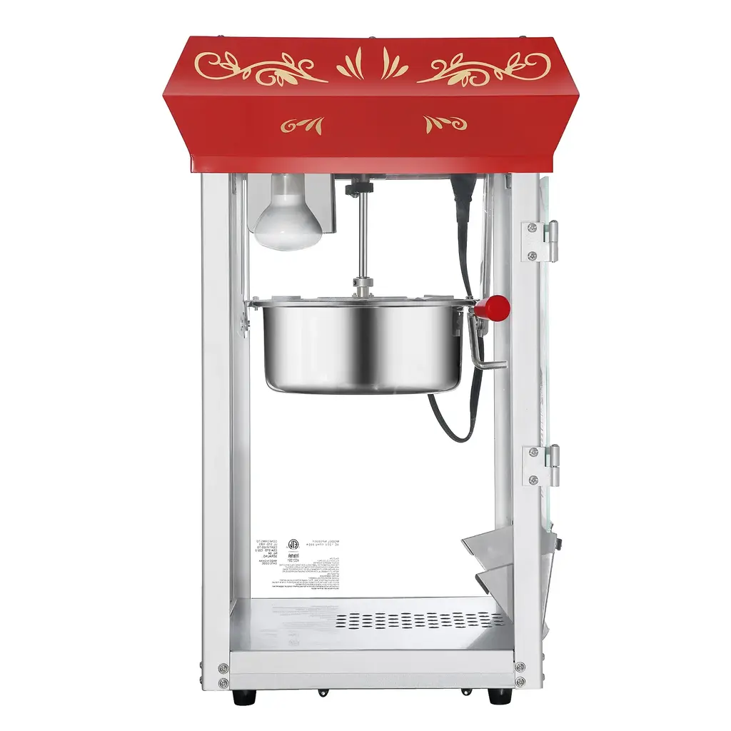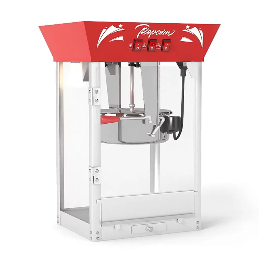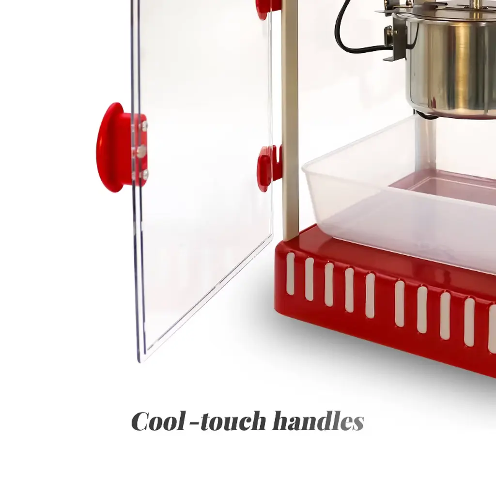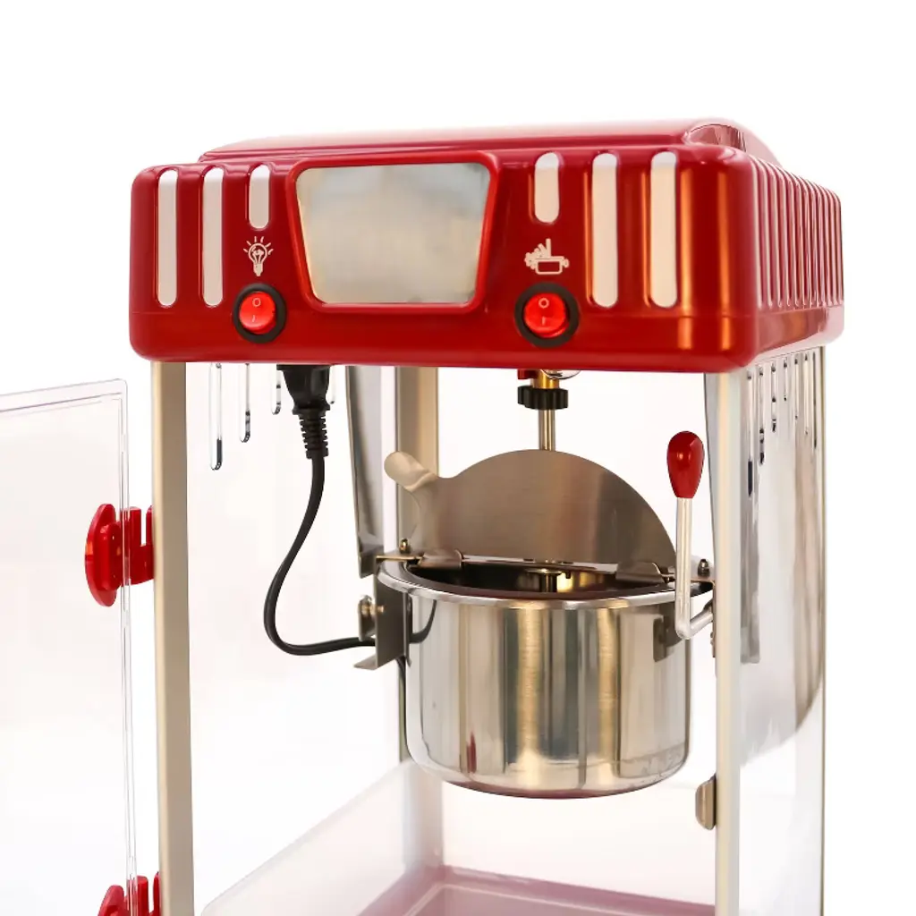 Be a 'pop' star with the Classic 2.5 oz. Kettle Popcorn Maker by Elite. The 2.5 oz. stainless steel kettle makes up to 1 gallon of popcorn per batch in just 5 minutes to share with friends and family. It comes with a warming light to keep your popcorn hot and fresh and a convenient removable tray for serving popcorn on home movie nights. It features plexi-glass doors and windows and an attractive candy apple red finish with silver inlays that will have your party guests in awe. Traditional hot oil kettle popcorn popper.