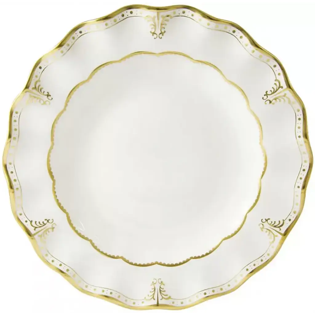 The use of delicate gold on the exquisite Elizabeth adds a refined touch to the fluted design of the Royal Shape. The resulting clean, crisp appearance gives an impression of effortless charm, perfect to accentuate many patterns including the delicate floral design of Royal Antoinette. Elizabeth is available in both Gold and Platinum gilding. Made in England by Royal Crown Derby. The Royal Crown Derby Porcelain Company manufactures the highest quality English fine bone china and collectibles at its headquarters in Derby, England (the English Pottery district). Although the present factory was established in 1878, the original factory was set up nearby in Nottingham Road in 1750. Queen Victoria granted permission to include the title "Royal" in the company name in 1890.