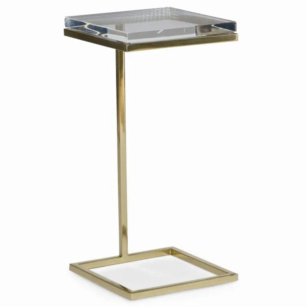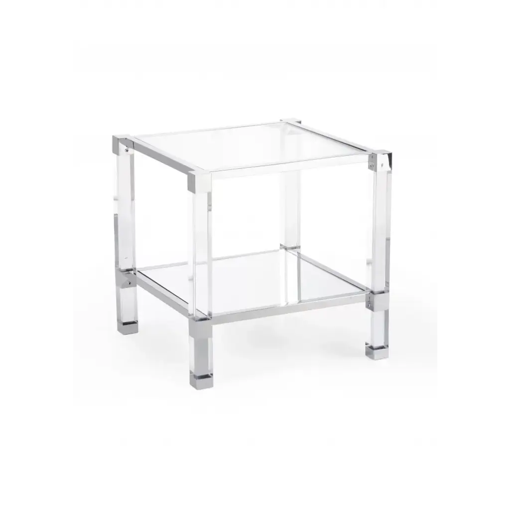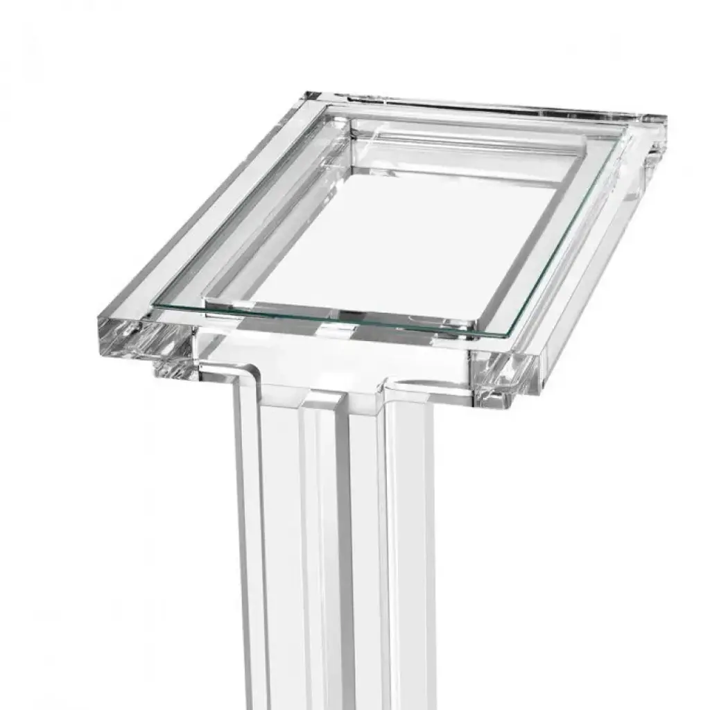 Clear acrylic and crystal glass transform the Elle Hugging Table into a versatile of-the-moment statement. Intricate channeling along the legs and apron elevate this classic silhouette.