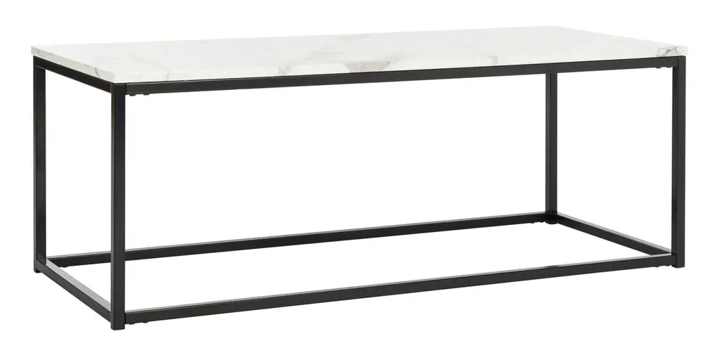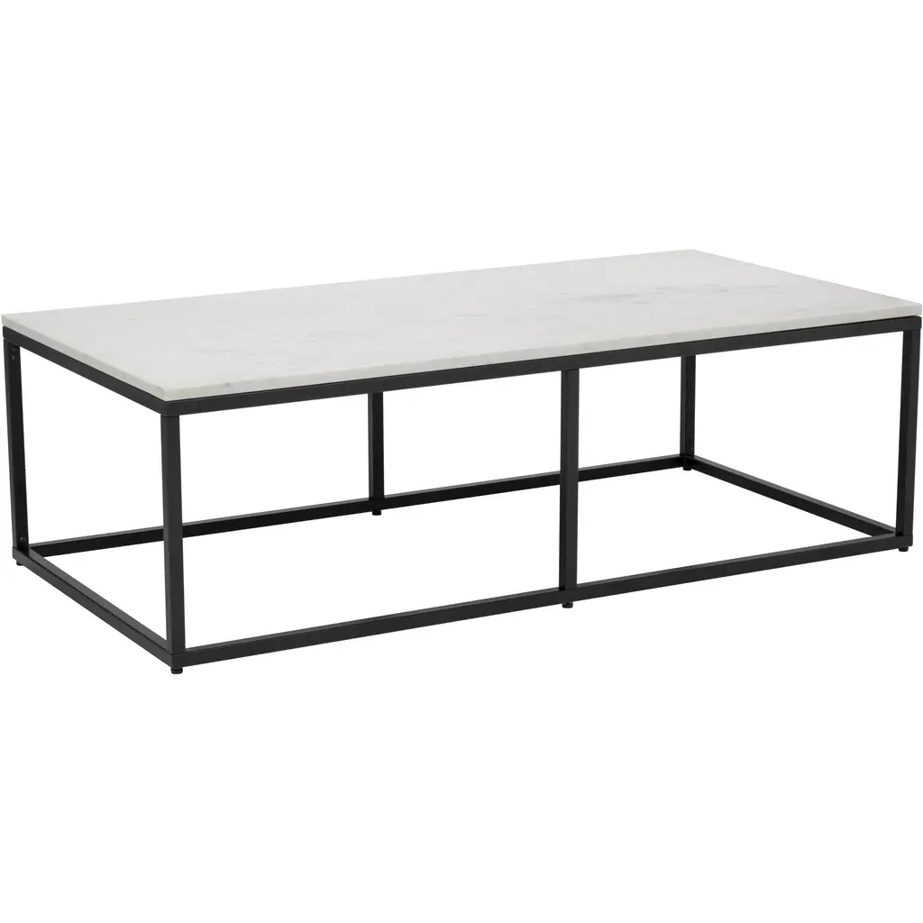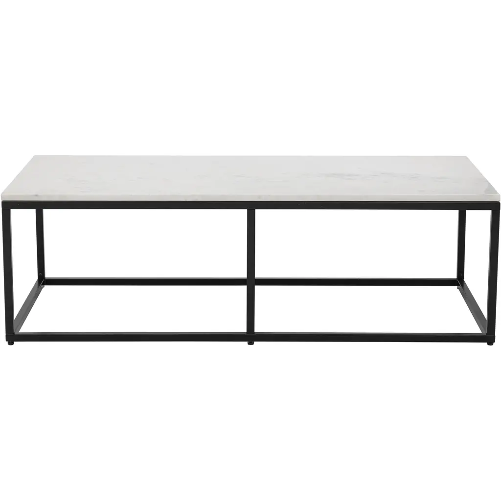 With an understated design, this modern coffee table is made distinct by clean lines. Features a white polished natural marble table top with a matte black powder coated steel base. Coordinating console and end tables also available. As marble is a natural material, unique veining, pitting, fissures, micro-cracks and colour variations are all characteristics that add to the uniqueness and beauty of each piece. Made in India. With refined craftsmanship, this design was brought to life by skilled local artisans. Due to the nature of handcraftsmanship, unique imperfections such as fissures, markings and variations in colour and shape are welcomed and appreciated characteristics for a truly one-of-a-kind piece.