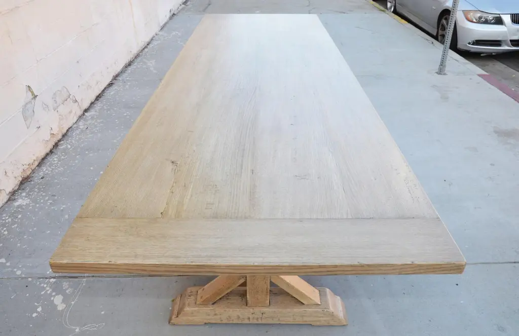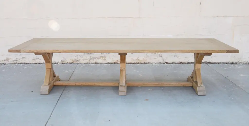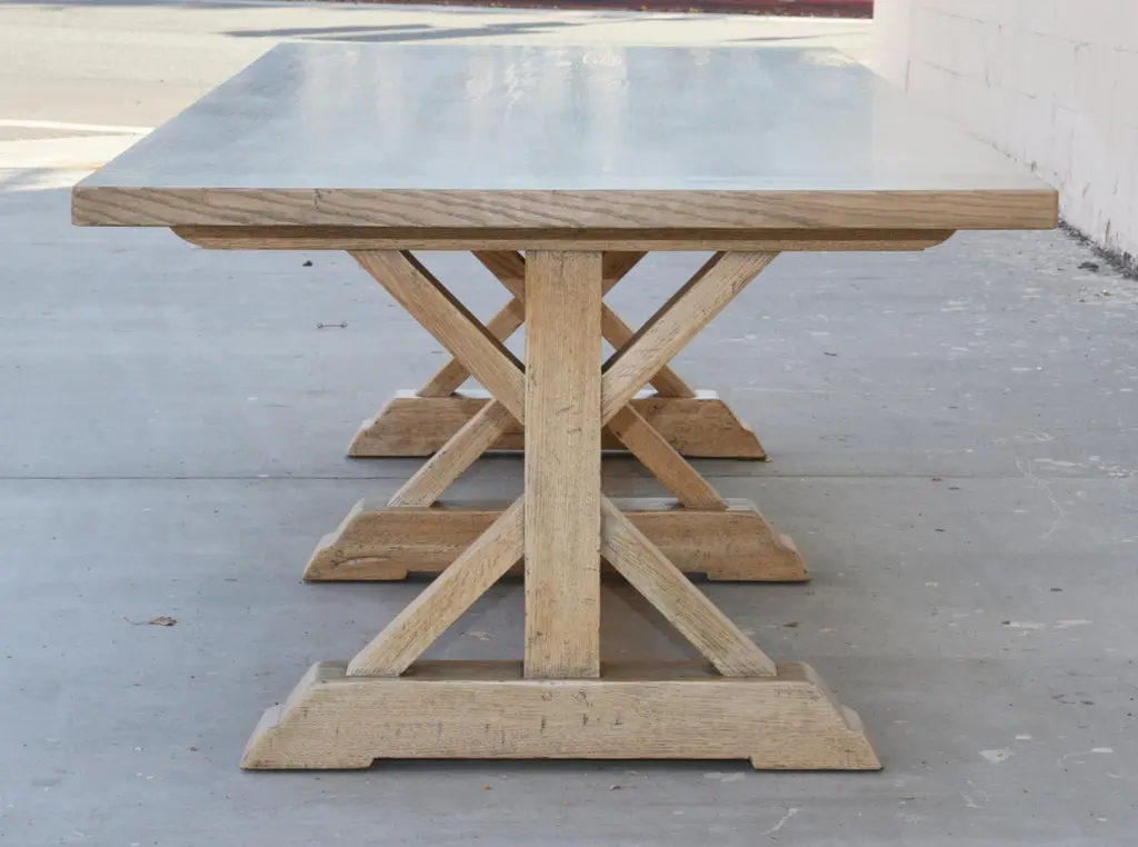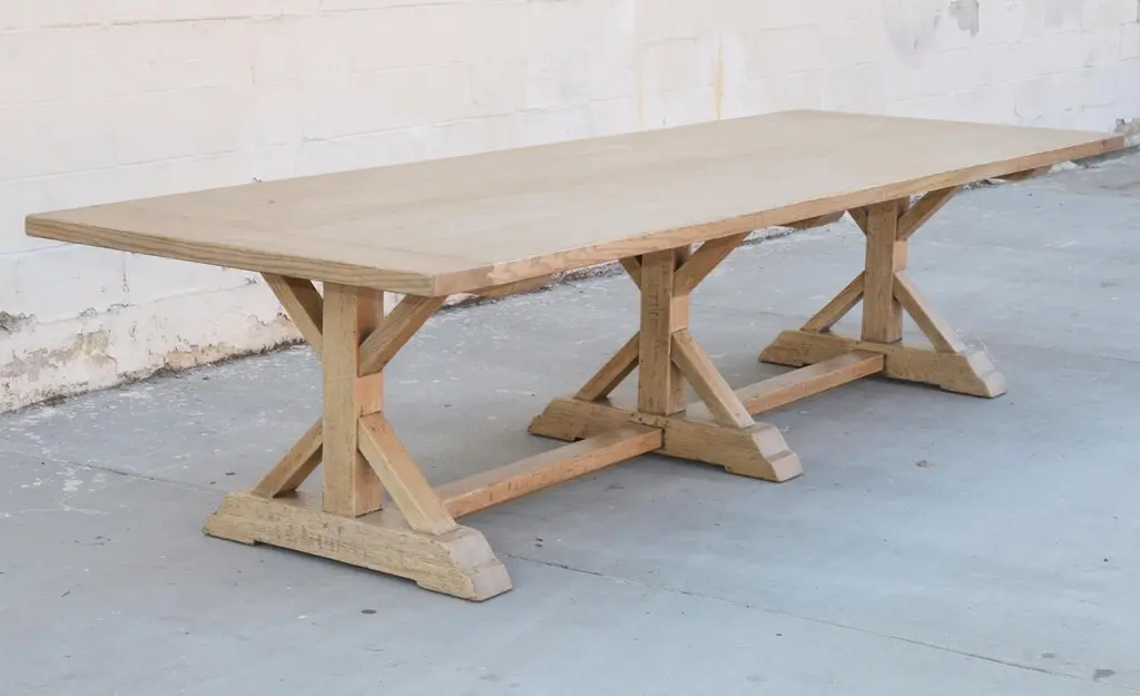 This oak farm table is seen here in 132" x 44", however it can be built in any size.Because each table is bench-made in our own Los Angeles workshop you can influence all aspects of design, including size, wood species and finish. We use only traditional carpentry techniques, mortise and Tenon construction reinforced with handcut wooden dowels. No nails or metal fasteners of any kind are used!If you require customized overhang dimensions please stipulate with order.