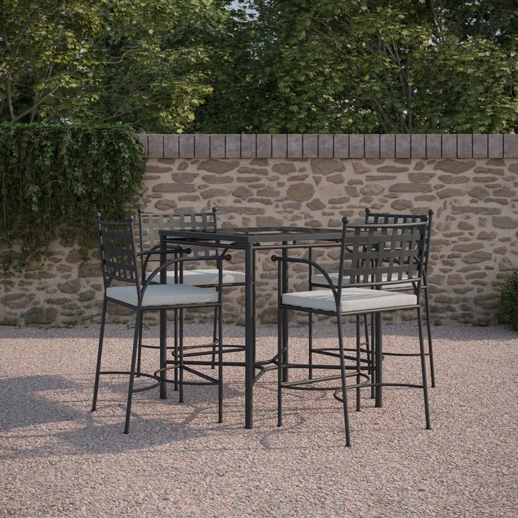 Emeline Glass Black Iron Square Outdoor Counter Table - 35"