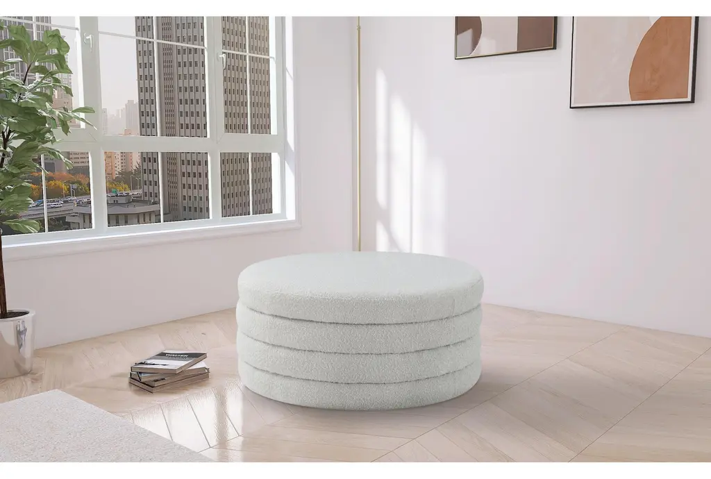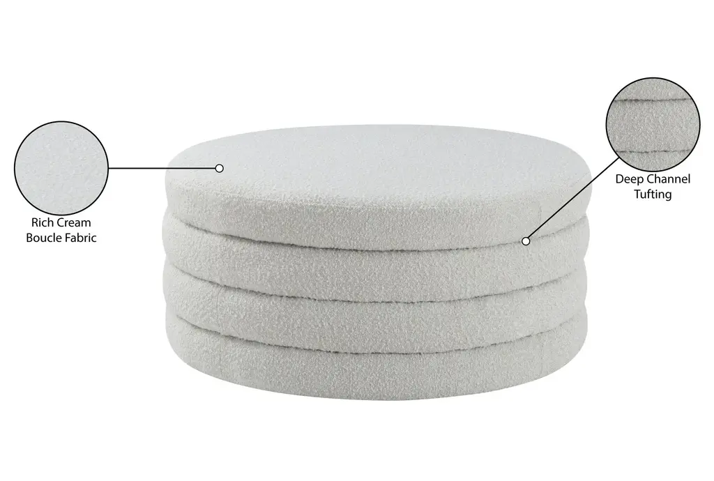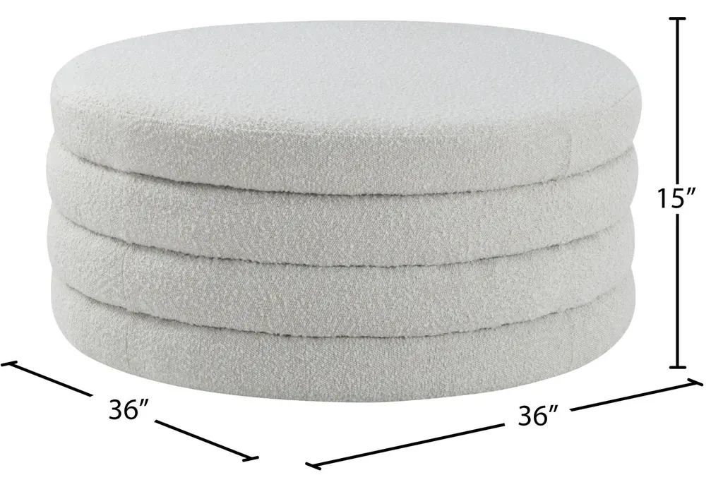 Emma Modern Cream 36" Round Boucle Fabric Ottoman Coffee Table