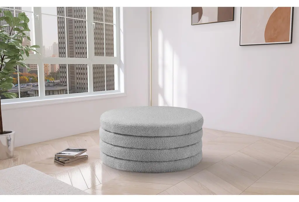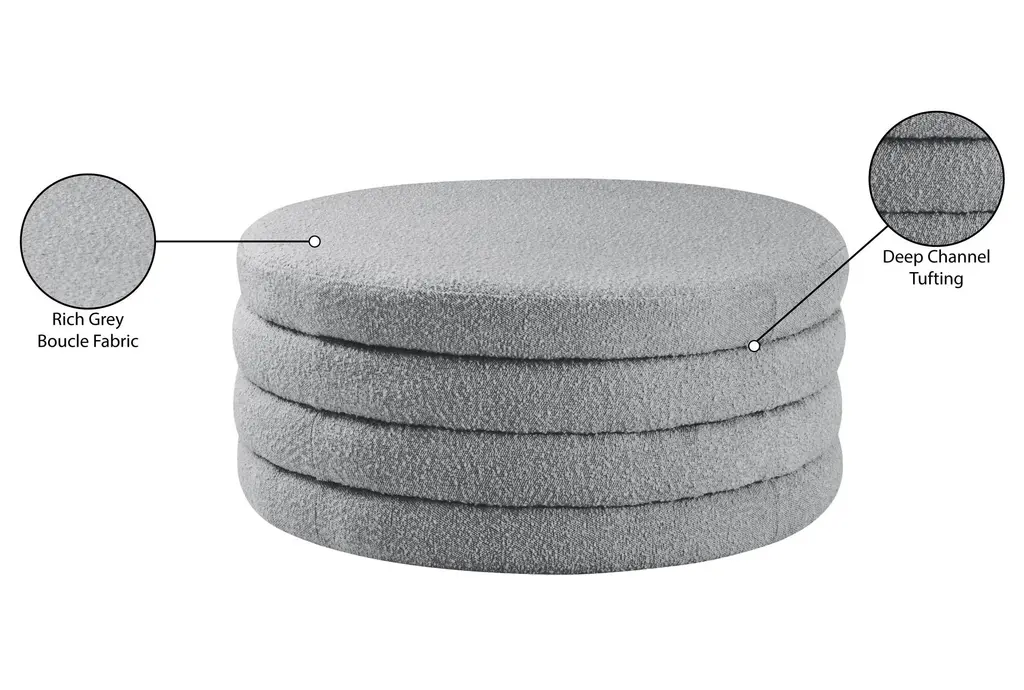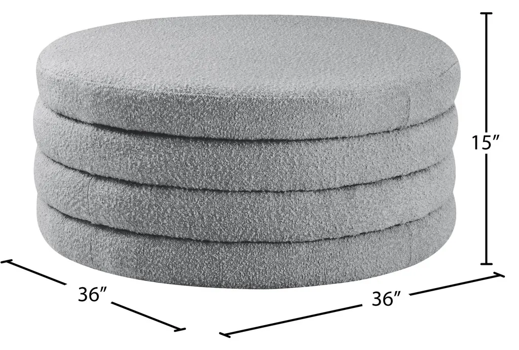 Emma Modern Grey 36" Round Boucle Fabric Ottoman Coffee Table