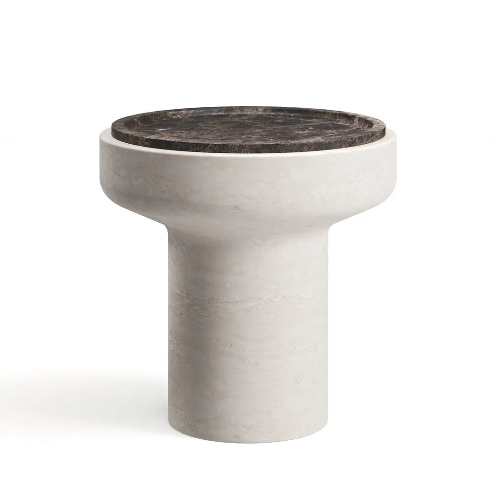 Emperador Dark Trivoli Coffee Table L by Ivan ColominasDimensions: D 50 x H 50 cmMaterials: Travertino Navona and Black Emperador.TIVOLI COLLECTION:TIVOLI, a picturesque city situated on the western slopes of the Sabine Hills, was the place that the Ancient Rome’s elite chooseto enjoy the pleasant life in the countryside, in their wealthy residences. Among this magnificence, in the river next to the city,was hidden a treasure, the oldest and most famous Travertine marble, a natural stone present throughout the history of Italianarchitecture, both as a building material and decoration, that gave us the splendour of the Colosseum. Ivan Colominas pays tributeto the generosity and history of this exquisite stone, in his new collection that evokes the gem of Tivoli. Tables, together with stool,vases and centerpieces. An harmonious embrace between smooth lines and wonderful materials: Travertino Navona with wood orwith a new delightful shade of marble, the Emperor Dark. A feast for the eyes to celebrate the essence of beauty.The collection is a tribute to one of Italy’s great masters of design and architecture: Angelo Mangiarotti, creator of symbolic, marble design pieces, who is closely connected to the Apuan region and its craftsmen. The essential is visible, with a collection that offers infinite applications: serving, decorating, presenting, containing, tasting. The “material is served”, flawless and delectable.Ivan Colominas studied industrial design at the UCH-CEU in Valencia, where he also attained a Master’s of Transportation Design. The collaboration with several international firms has, in recent years, led him to work across a diverse range of sectors: from automotive, to sporting goods and home accessories. His design research is heavily influenced by 20th century iconography: focused on delivering products that, while belonging to a digital age, convey analogue qualities. Colominas’ work has garnered six Red Dot Awards and has been published in specialised media worldwide.