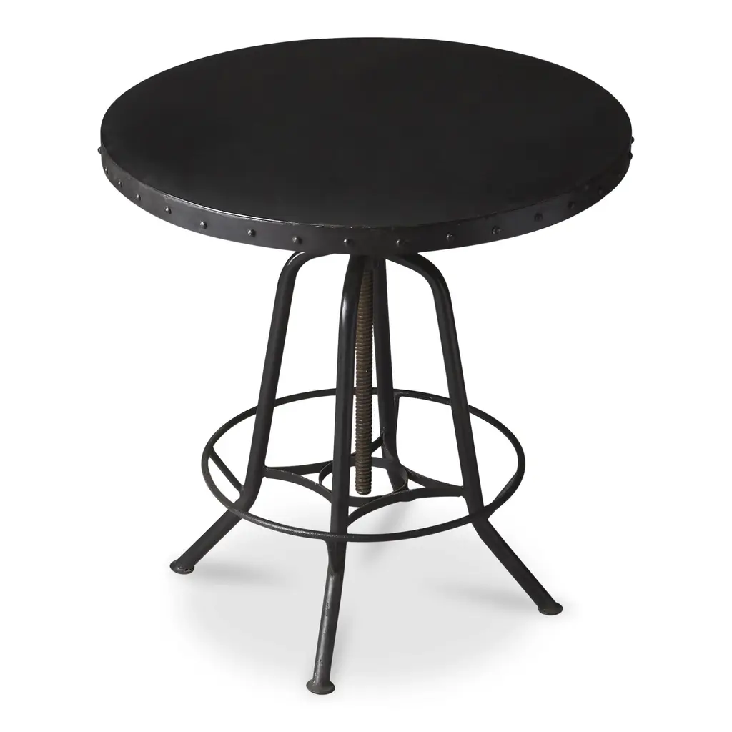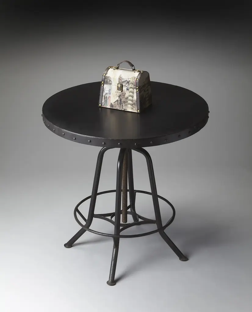 This industrial-look hall table rotates and adjusts to the desired height. Its all-iron construction with a distressed black finish is a distinctive touch in a variety of spaces, and its height-adjustable base provides ultimate function making it equally suitable for use as a pub table. Durably Constructed With: Iron Product Construction Features: Finish Distressing Product Assembled Measurement & Weight: 43.0" H x 29.0" W x 26.75" D -- 55.0 lbs. 55 lbs. Suggested weight capacity Item Arrives: Assembled Photo may slightly differ from actual item in terms of color/finish due to the lighting during photo shoot or the monitor's display.