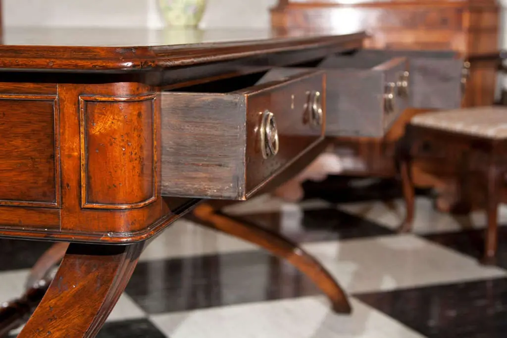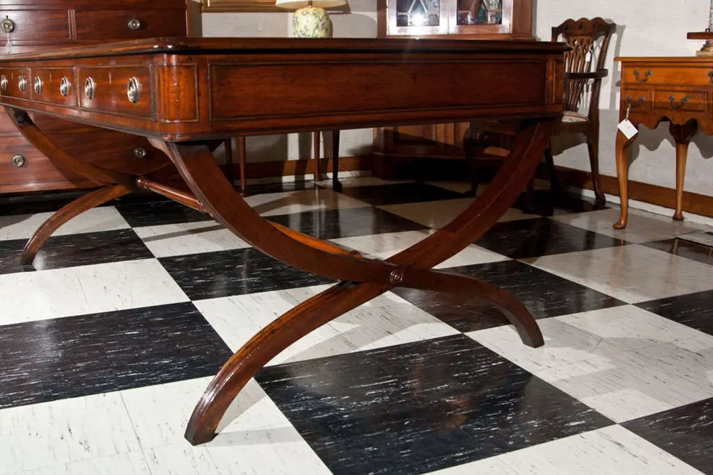 English Crossed Sabre Leg Writing Table