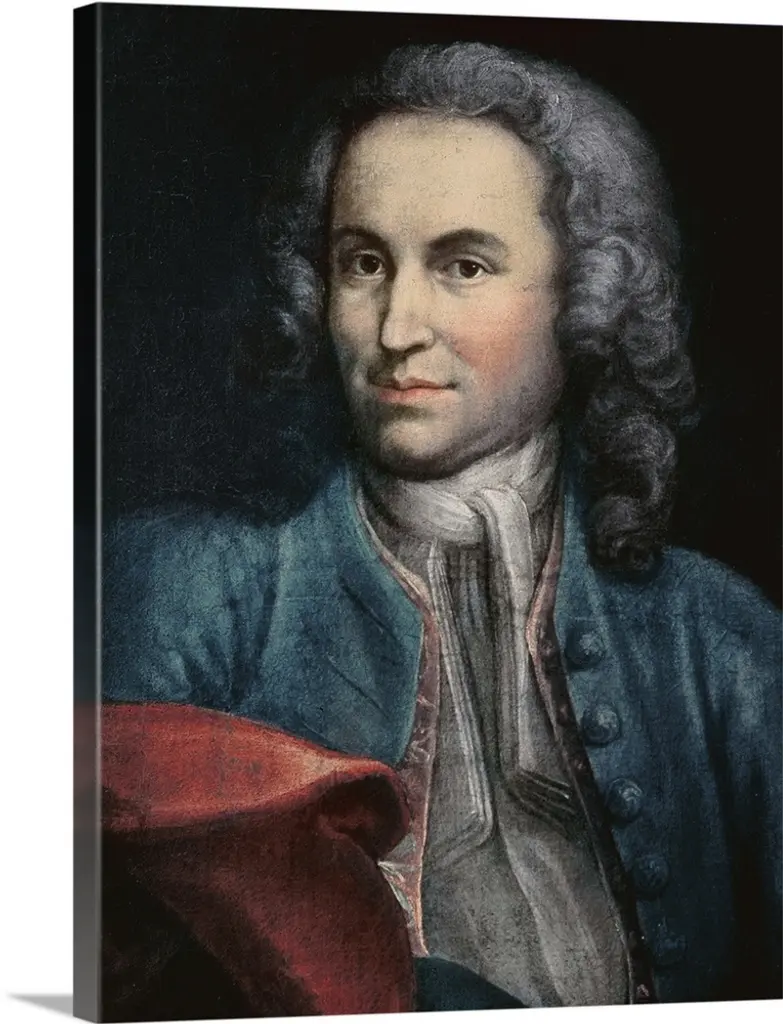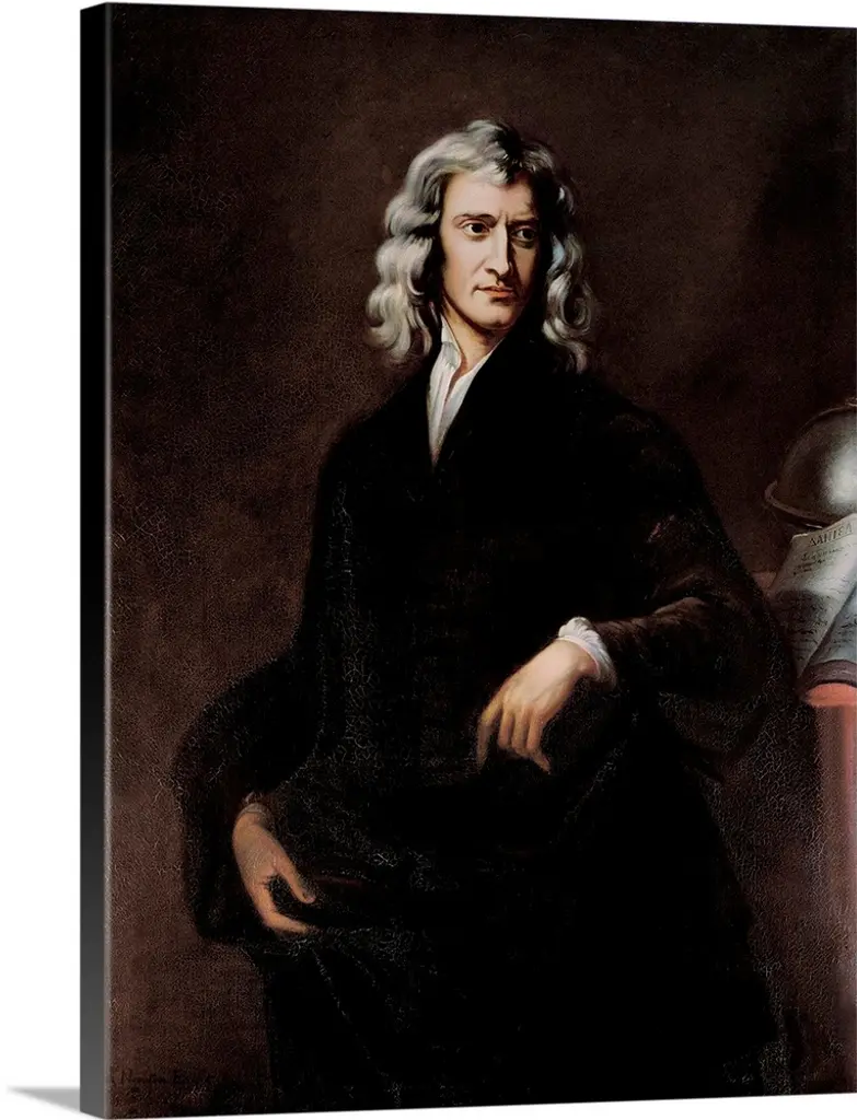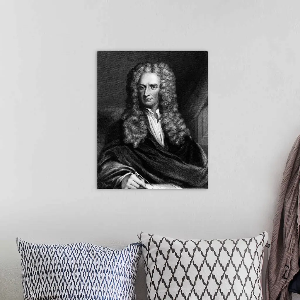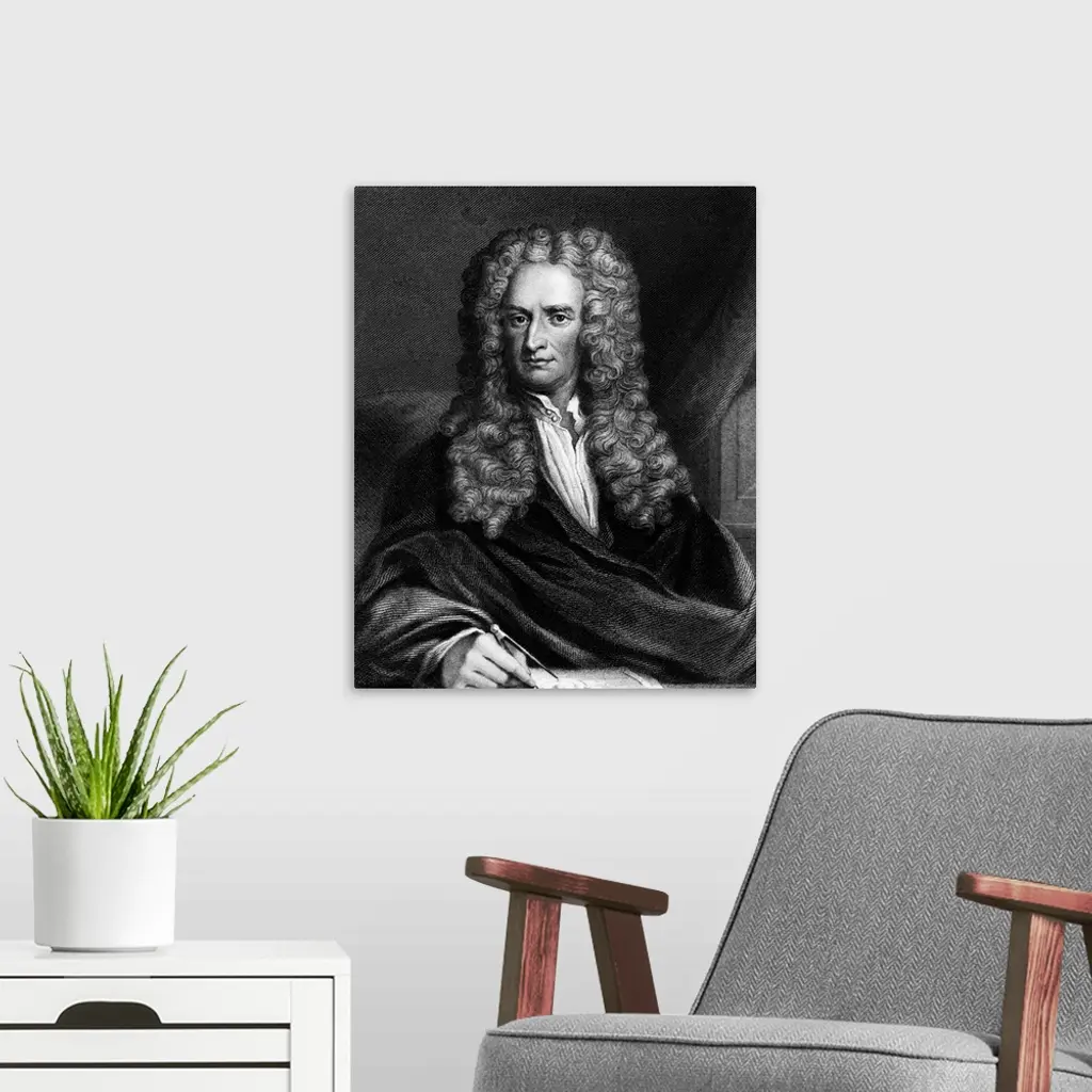 Engraving Of Sir Isaac Newton Seated At A Table
