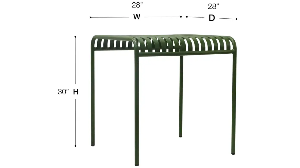 The Enid 28" Outdoor Table's exquisite slat design and gleaming surface make it look great on your patio, in your garden, or anywhere else indoors or out. Made of powder-coated steel, this table is rust, corrosion, and water-resistant for a long-lasting use.