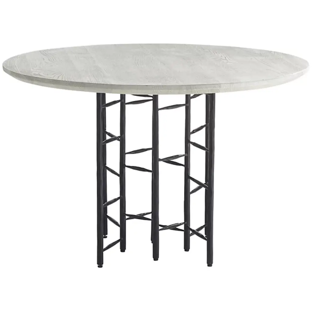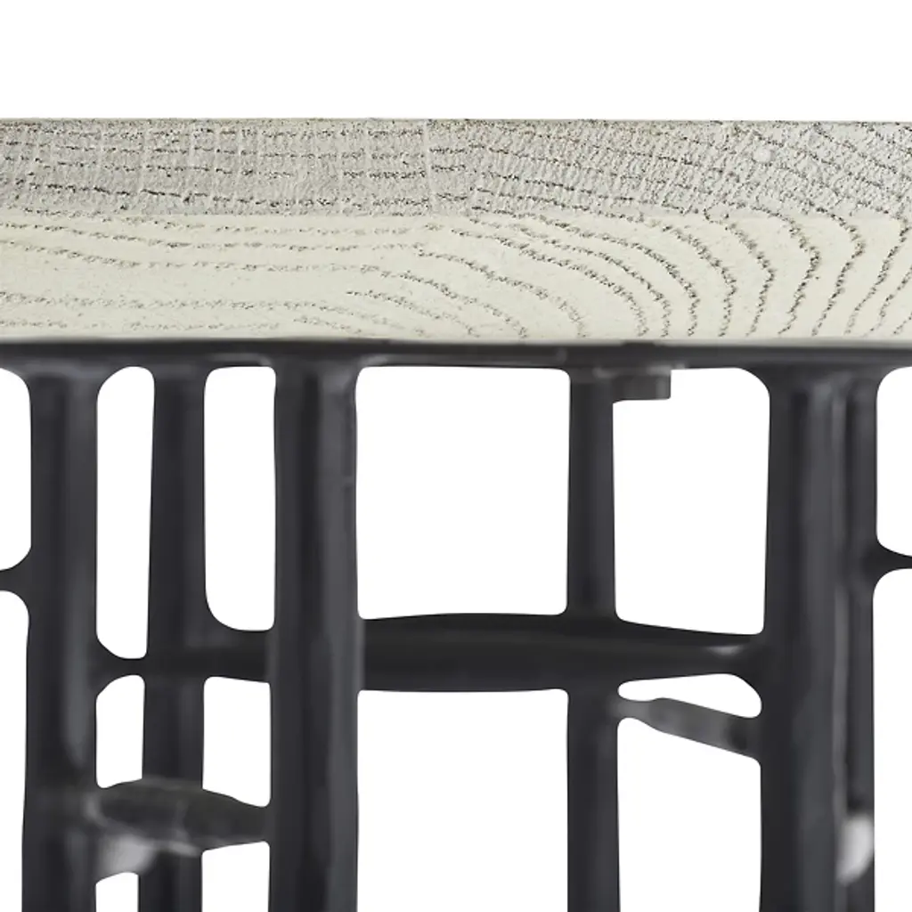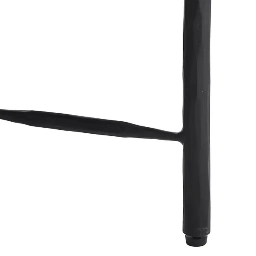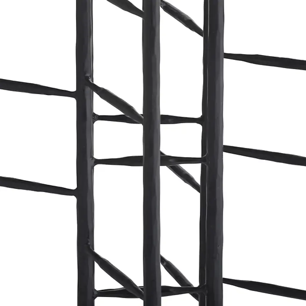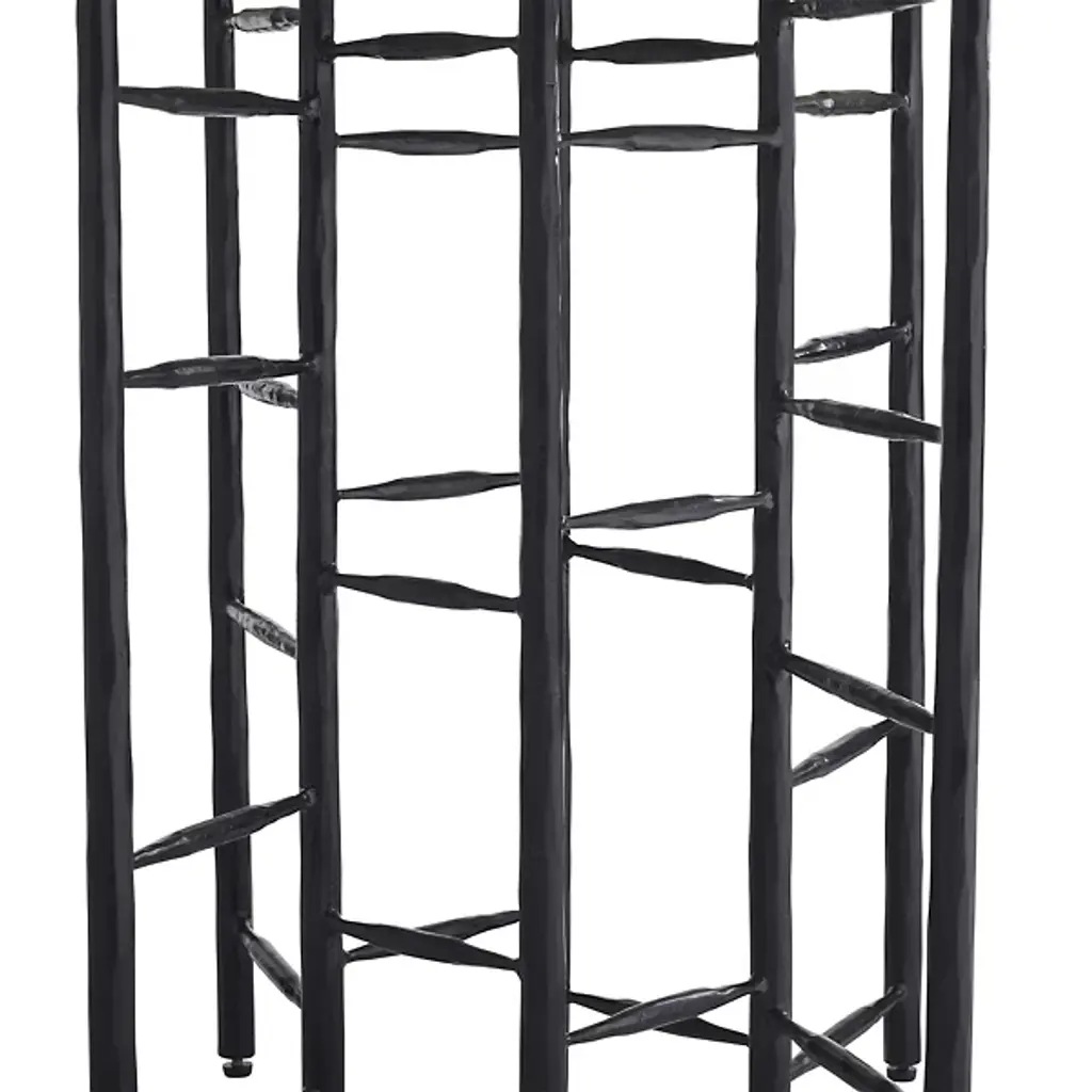 The Enito Entry Table from Arteriors intersects planes of blackened iron combined with smoke oak wood in this strikingly modern design. The ladder-like supports add an element of intrigue and sophistication, making it a perfect addition to any entryway or great room. Each piece is unique, with slight variations in the finish that enhance its character and appeal. This blend of materials and contemporary design ensures it stands out in any space, offering functionality and style.
