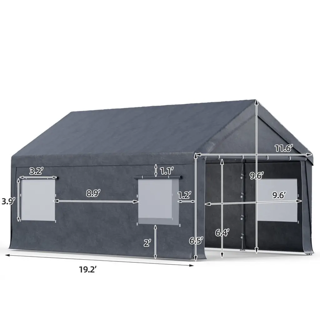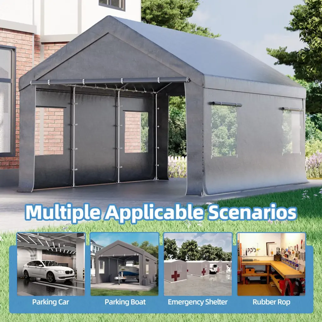 Erommy 12 Ft X 20 Ft Car Canopy Portable Garage, Gray