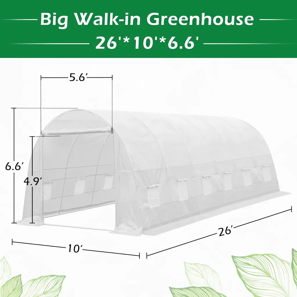 Erommy 26' Large Portable Greenhouse – Walk-In Plant Hot House For Gardening, White - 10'x26' - 10'x26'