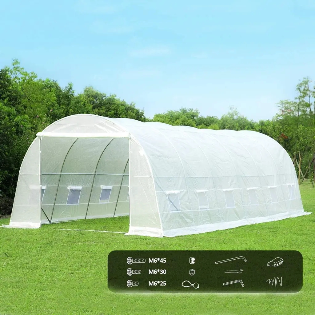 Enhance your gardening experience with the EROMMY Greenhouse Gardening Tent, designed to safeguard your plants and prolong the growing season. Constructed with premium 140g PE fabric and an all-edge mesh design, this greenhouse ensures excellent light penetration for robust plant development. The sturdy steel frame is built to resist rust, corrosion, chipping, and peeling. Featuring 8 mesh windows for airflow and a zippered roll-up door that can be secured open, this greenhouse is ideal for year-round cultivation. Setup and takedown are straightforward and hassle-free.The greenhouse includes eight roll-up windows with mesh netting to facilitate cross ventilation and effective climate management.The walk-in garden greenhouse boasts a robust steel structure with a galvanized finish, ensuring resistance to rust, chipping, and peeling.The durable, transparent PE plastic cover shields plants while permitting essential sunlight to filter through. The cover is easily secured to the frame using the provided tethers and single-sided tape.The greenhouse is reinforced with 9 slant bracing tubes, a front cross bar, and middle reinforced tubes for added stability.The plant hot house features a large, zippered roll-up door for easy access, which can be fastened open at the top.Additional Details: