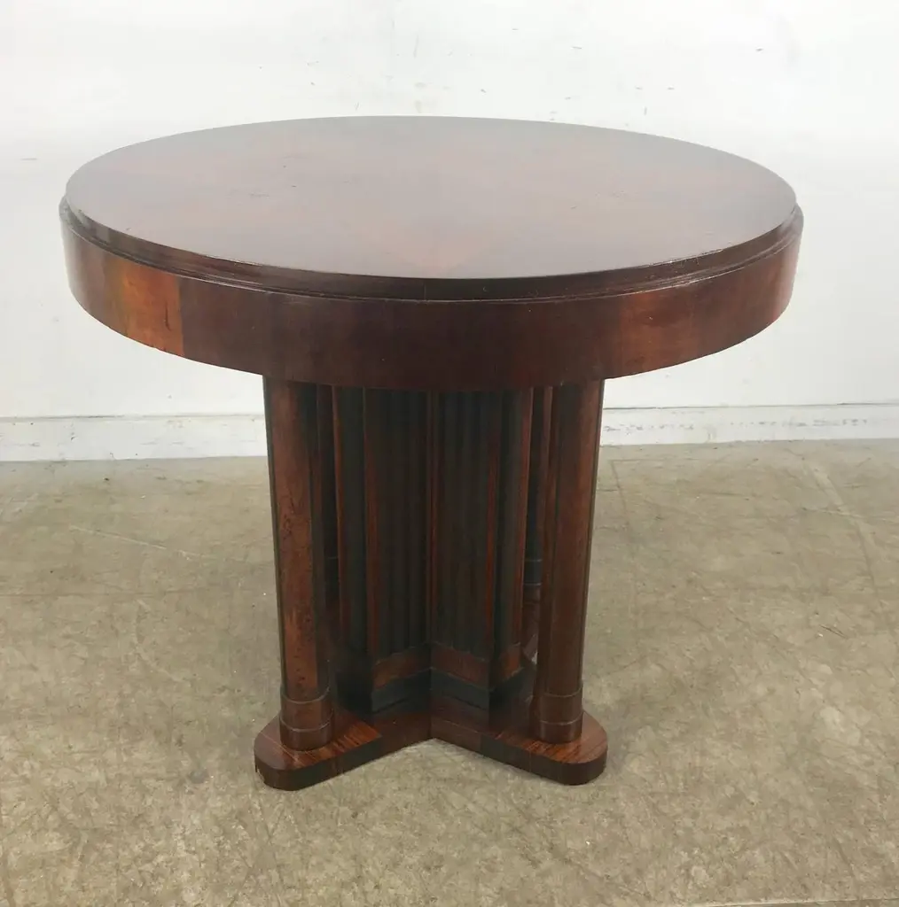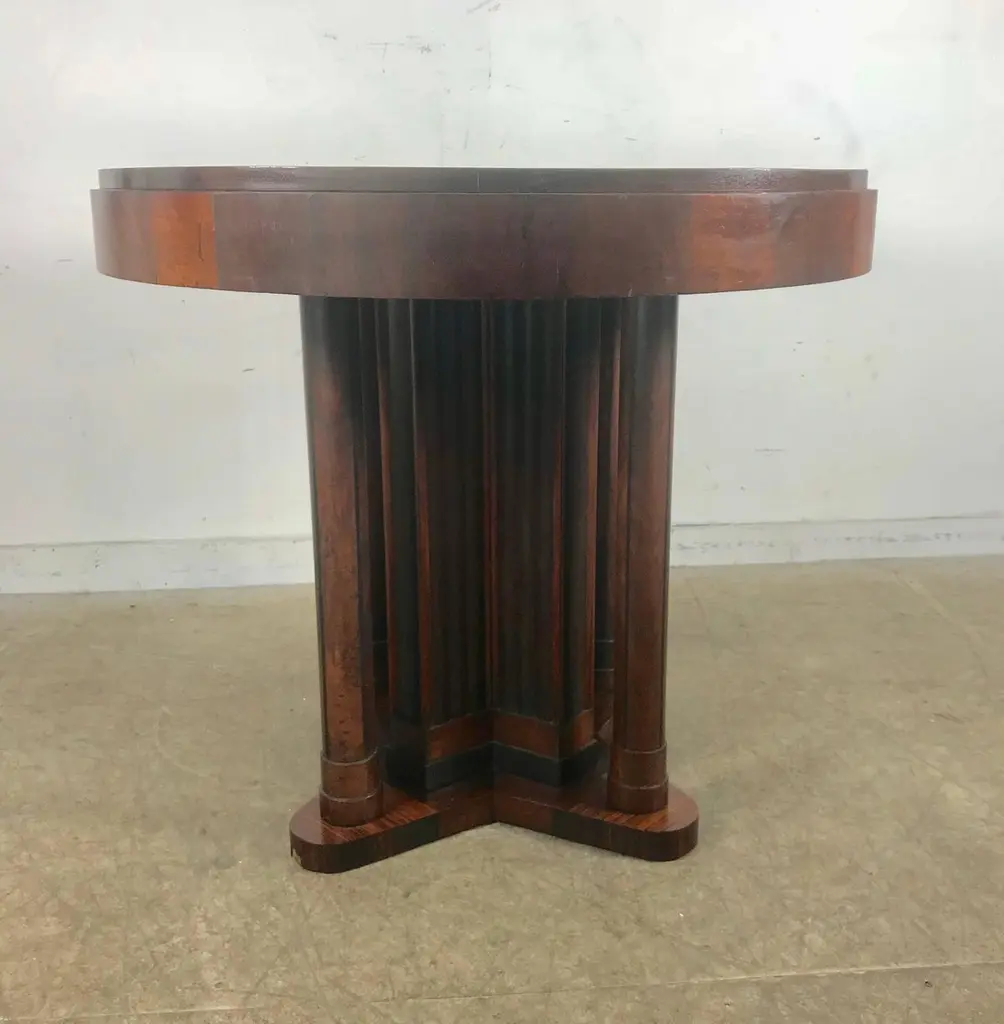 Eugene Schoen Art Deco Inlay Rosewood Columned Centre Tables