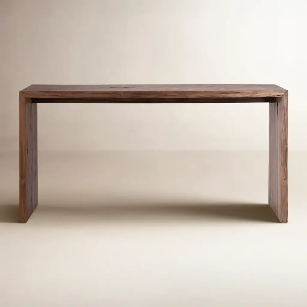 Crafted from solid reclaimed oak, beautiful natural grains, knots and imperfections take center stage with the Evander console table. Its modern, blocked construction balances rustic and contemporary design with organic energy, adding character and warmth to any space.