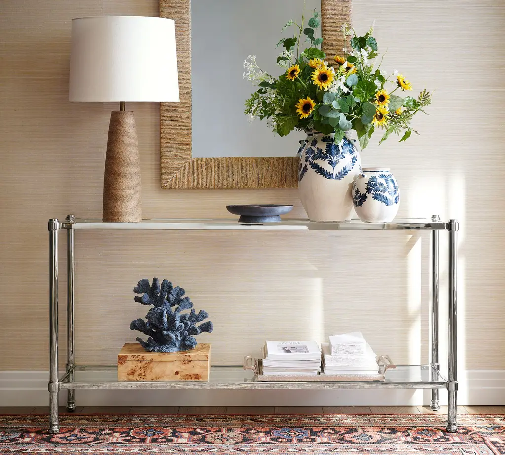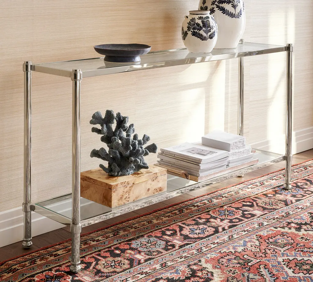 An elevated classic, Everson’s clean lines and clear surfaces keep your space looking open and light. Crafted from steel for long-lasting durability, the frame has beautiful ornamental joint and foot detailing and is fitted with tempered glass.