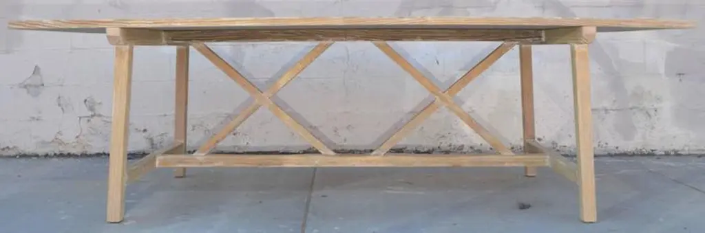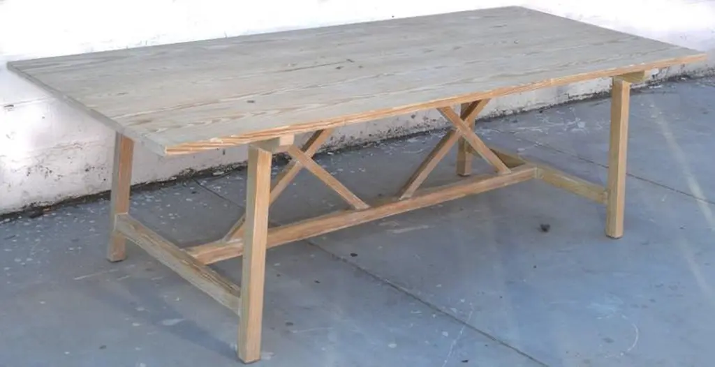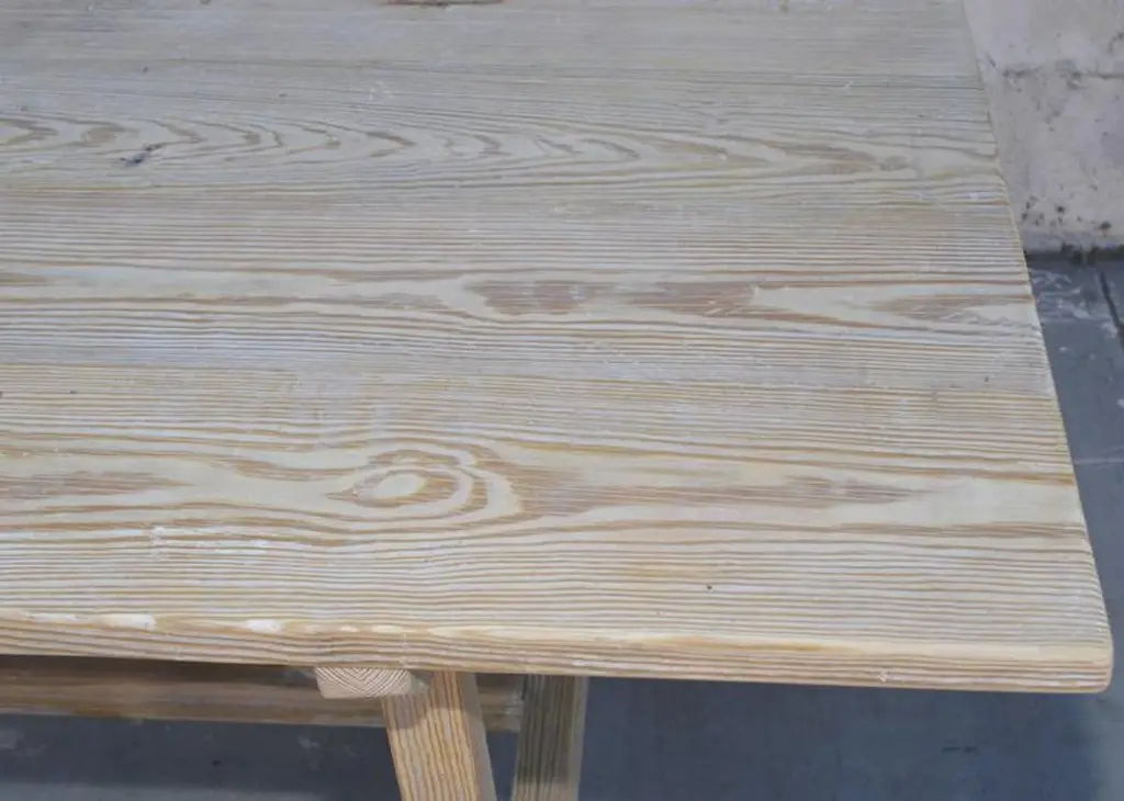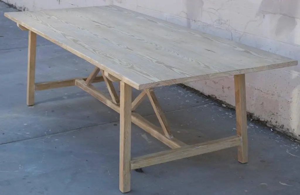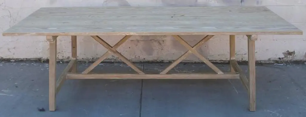 This vintage pine farm table has splayed legs with nicely worn planks and patina.Because each table is bench-made in our own Los Angeles workshop you can influence all aspects of design, including size, wood species and finish. We use only traditional carpentry techniques, no nails or metal fasteners of any kind. Just mortise and tenon construction reinforced with hand-cut wooden dowels.If you require customized overhang dimensions please stipulate with order.