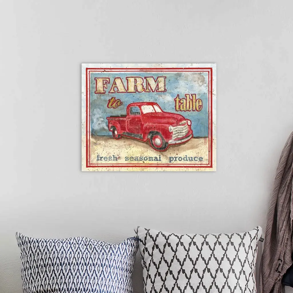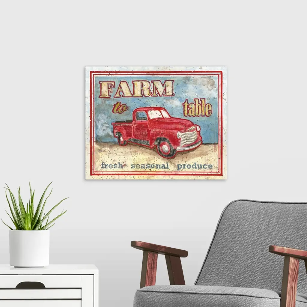 Vintage "Farm to Table" kitchen sign with a red truck.