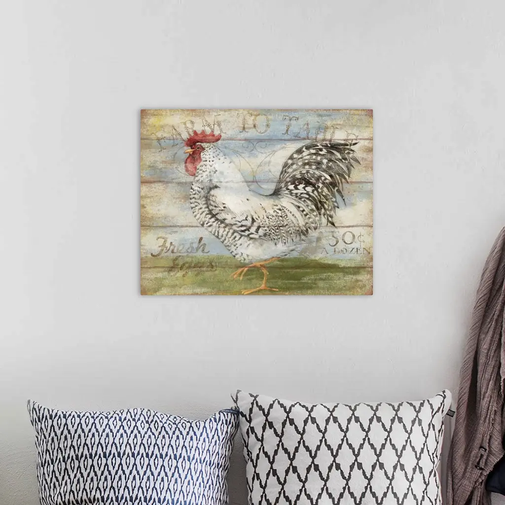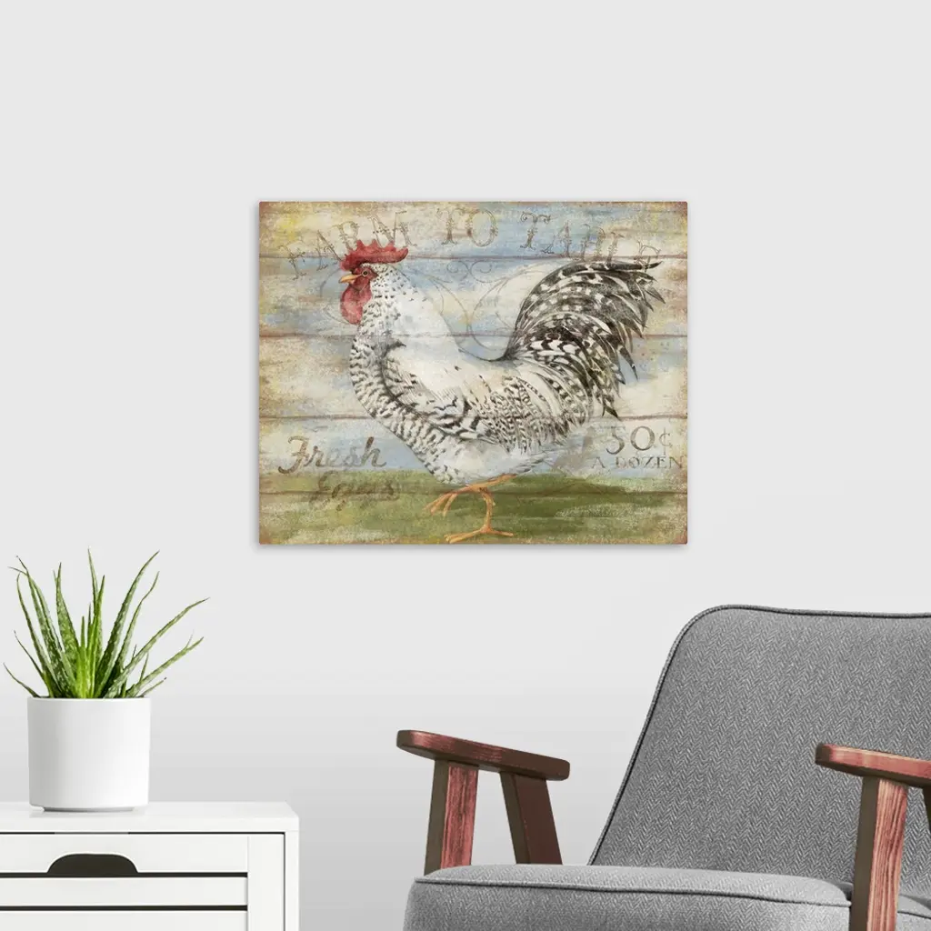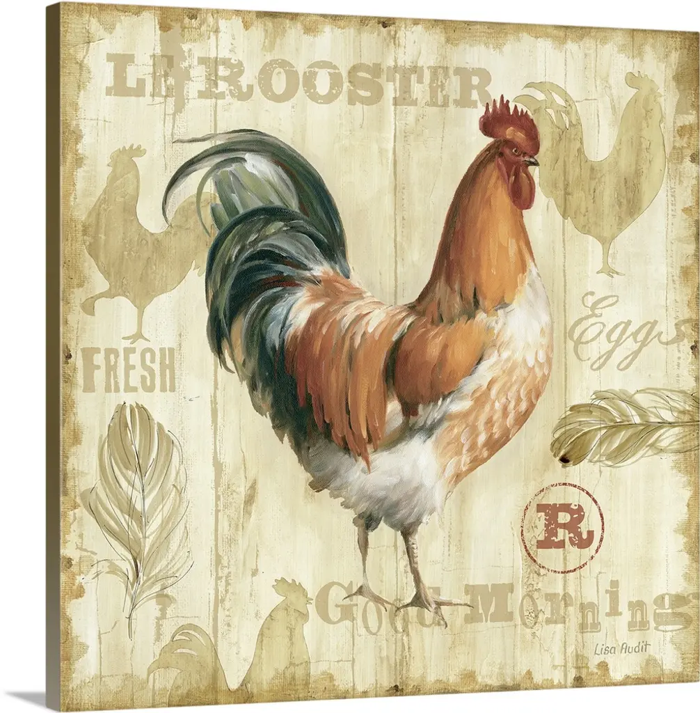 Sophisticated country rooster adds warmth to dining room, kitchen and more.