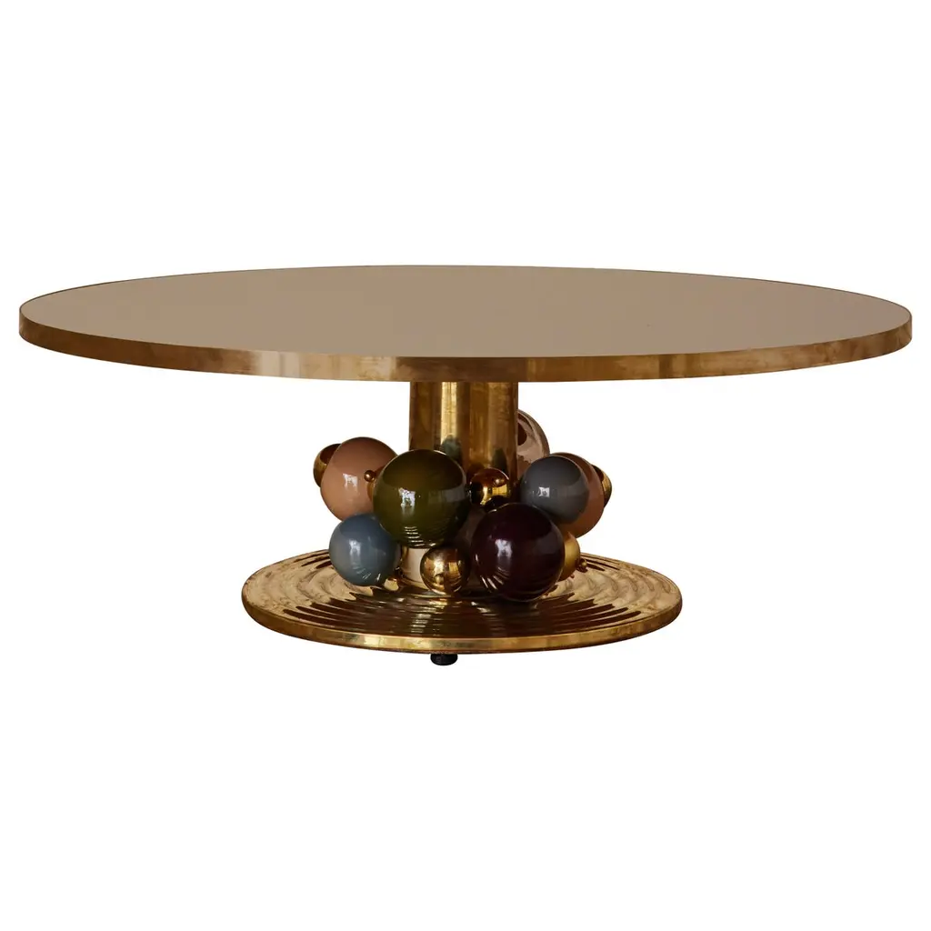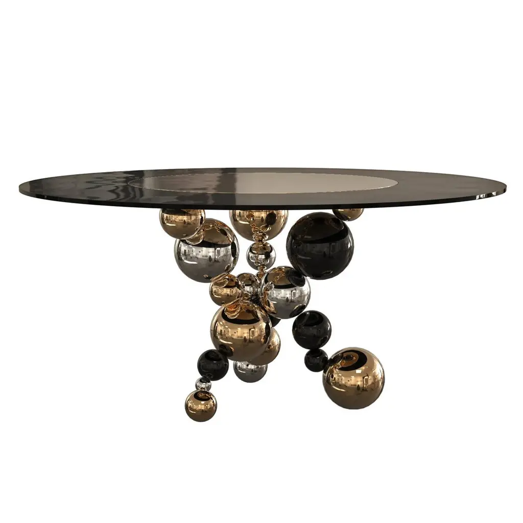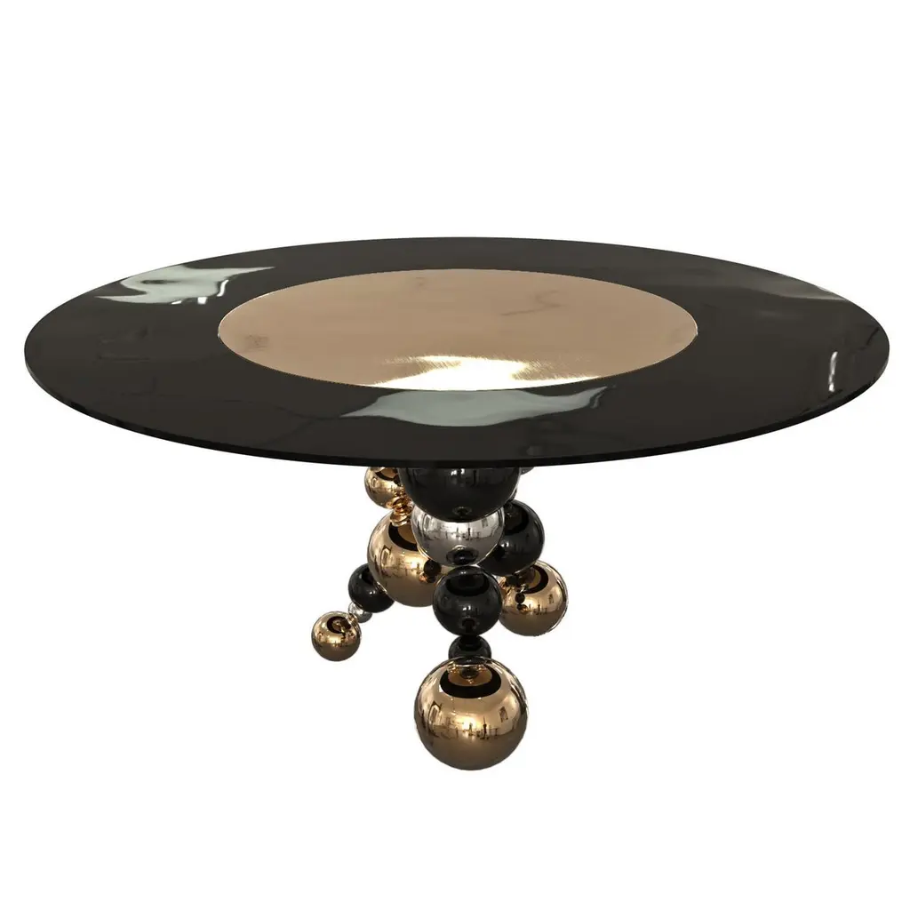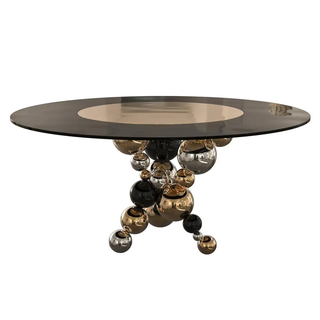 "Fedeltà" Round Dining Or Entryway Table With Bronze And Stainless Steel